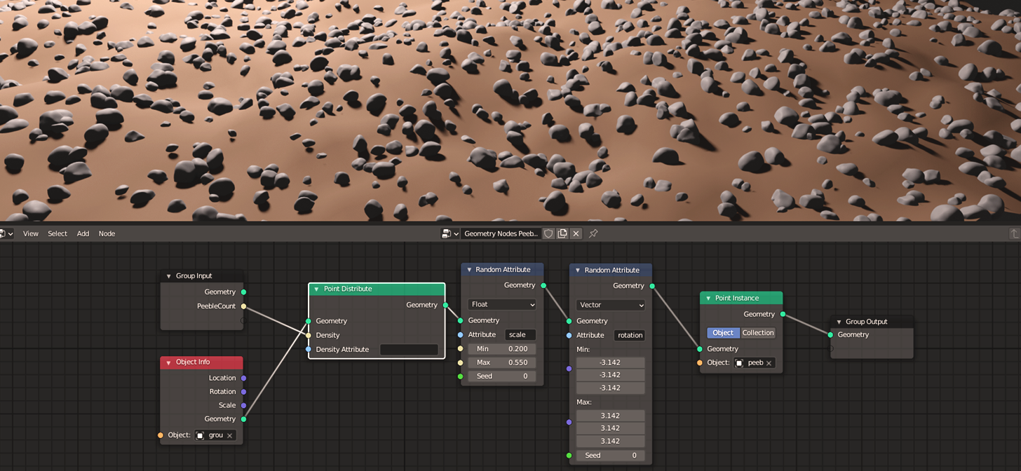 >>1024963you sure you want to do that with geo nodes and not shader nodes? all you'd need is some noise patterns