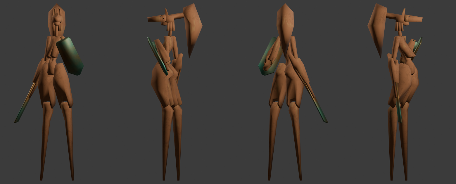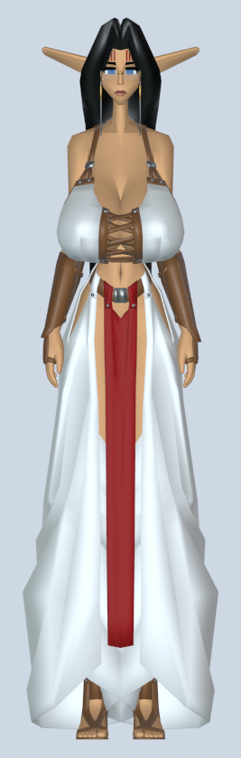 Jita - She doesn’t wear a shirt because wearing shirts is weird where she lives. Only her head is "finished".