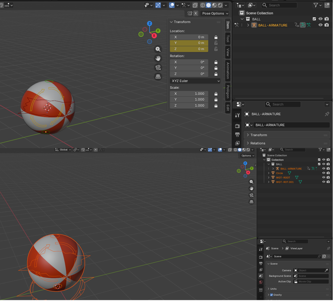 >>1026388Since this is deffo the p2design ball rig, make sure to watch chapter 02_15 to know the difference between linking and appending, as it'll explain exactly why you can see copies of all the used widgets.Basically because you appended, it copied every mesh widget it'd need to *edit* that rig in the scene. Thoses extra meshes are the meshes referenced by the custom bone widgets, hidden in the original file.Instead, you should link, not append, the BALL collection from that ball file, and it'll link it to the scene in a configuration where all those auxiliary meshes are in a hidden collection. Then right click the collection in the outliner and choose library override->make->selected and content. Then you'll be free to animate in pose mode.