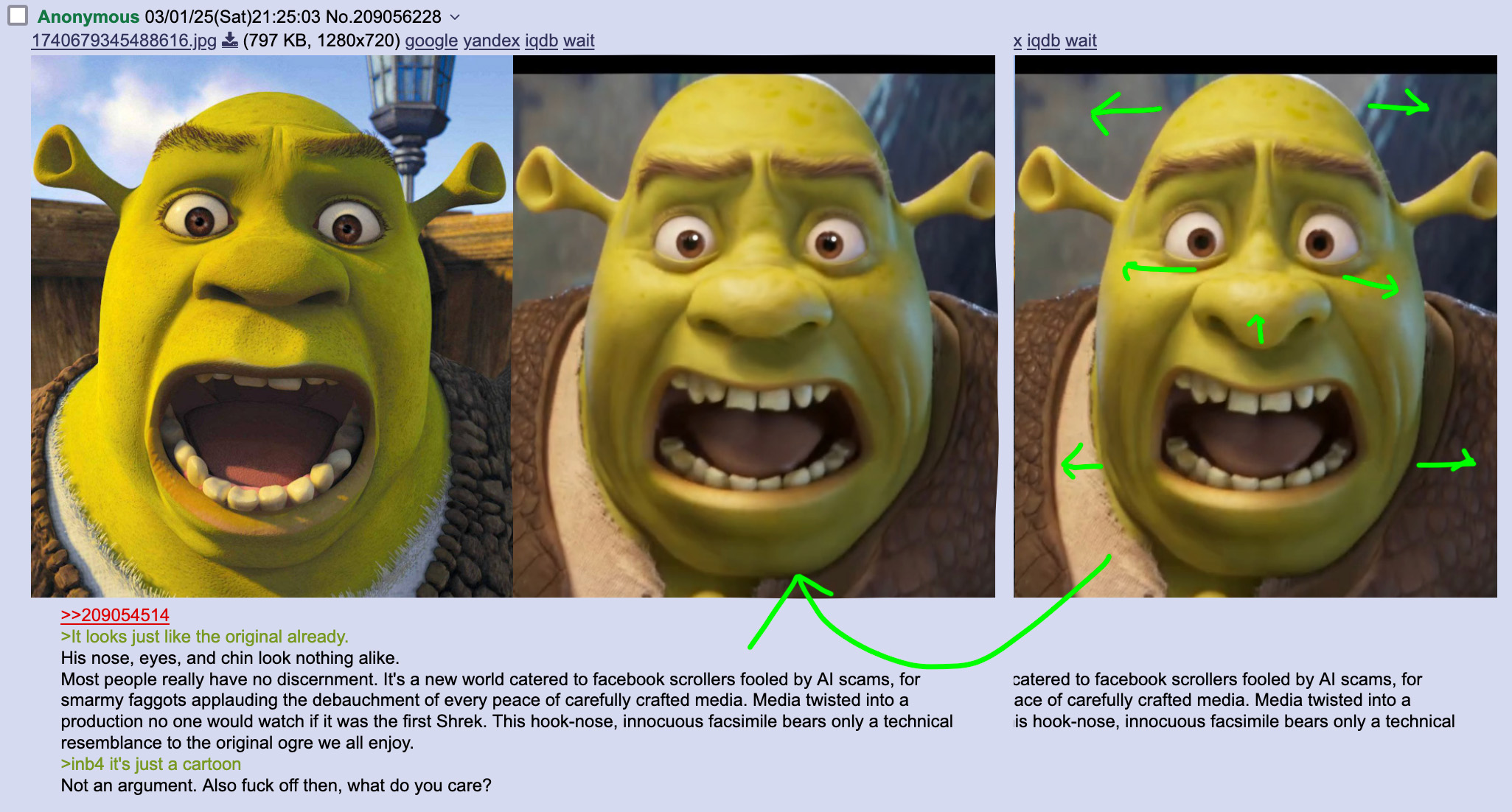 >>1008463>the new shrek?That's the thing: right just is not Shrek, he does not look like him, at best he could be some brother or cousin