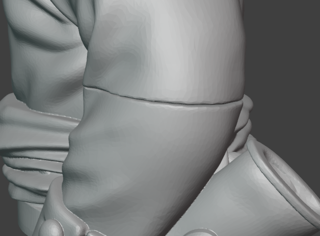 >>1023254well this was just to help identify if the detail you're missing and the polygonal faceting you're seeing on the samus model is because the detail is actually part of the texture maps and not the geometry itself. it was hard to tell because every screenshot you posted of the samus model it either had all its texture maps enabled and shaded or had some blown out bright white or metallic material that made it hard to see. ideally i'd want to see something like >>1023144but with the wireframe enabled, and if you're seeing details, panel cuts, ridge lines, etc where there is no additional polygonal detail, then its in the textures, and that wont printif its anything like >>1023254model, its 100% in the textures and you may be up shits creek as far as getting that detail you want in the print