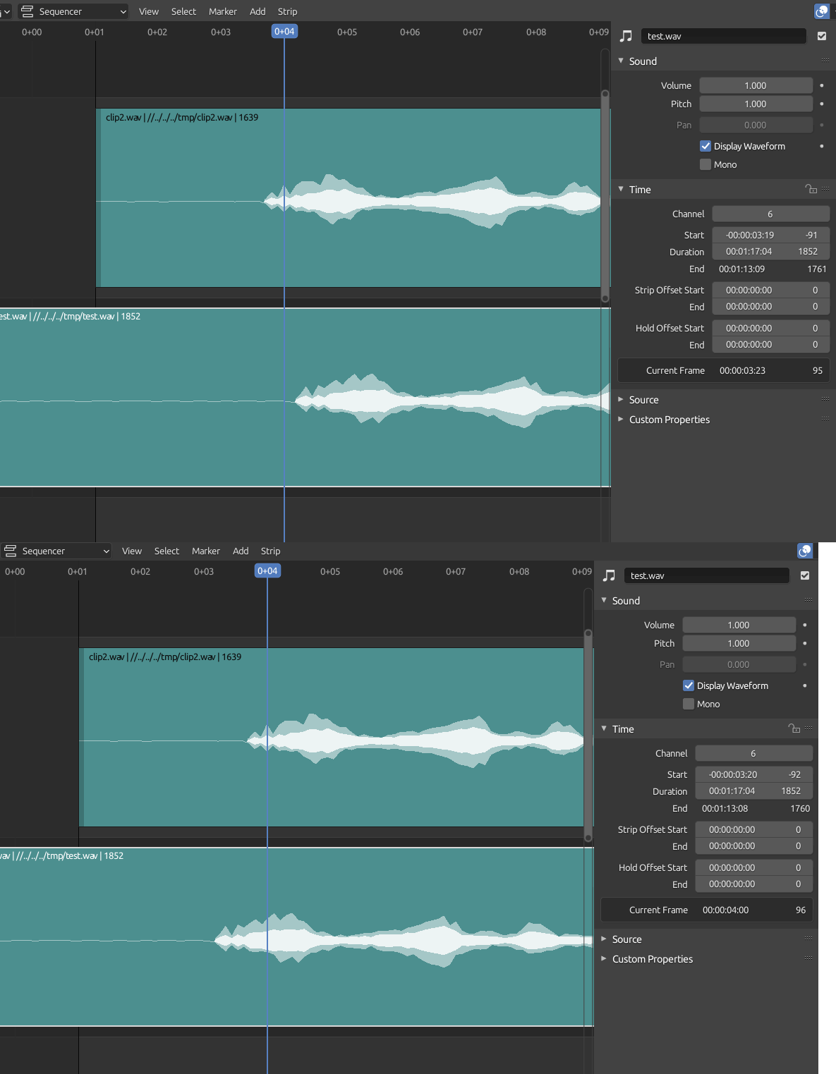 I suppose the answer is not but how to move bottom strip to match top strip ? both are audio only. move is less than 1 frame in 24 fps.