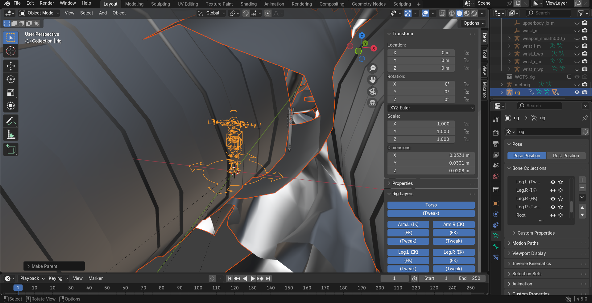 How do you manipulate extracted videogame models? I spent a week trying and failing because the rig bones were all over the place and I couldn't manipulate it properly. I tried building a rig anew and it again failed as if it couldn't ''fuse'' with the model.Eventually I went into using Mixamo to establish a new rig and download the fbx there to manipulate instead, which came with its own set of problems with shoulder armor, neck bones, unified fingers etc.I got what I wanted, I could ignore the deformities. But the question kept nagging on me.So, how do you guys deal with extracted models?