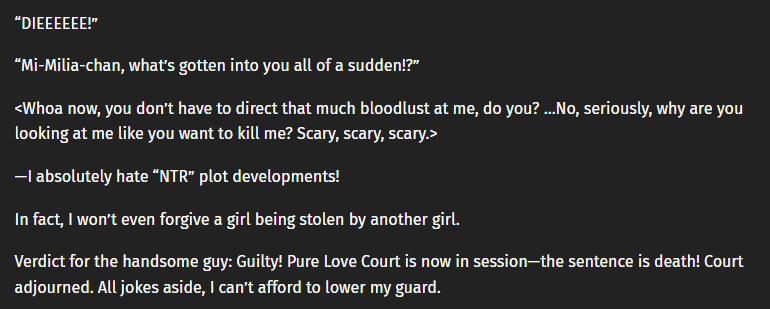 It’s always funny when a GB MC keeps convincing themselves that the obviously aggressively homosexual behavior girls are showing towards them is obviously just gals being pals, ordinary behavior between girls, clearly they’re overthinking things and the others just want to get closer to them as friends!