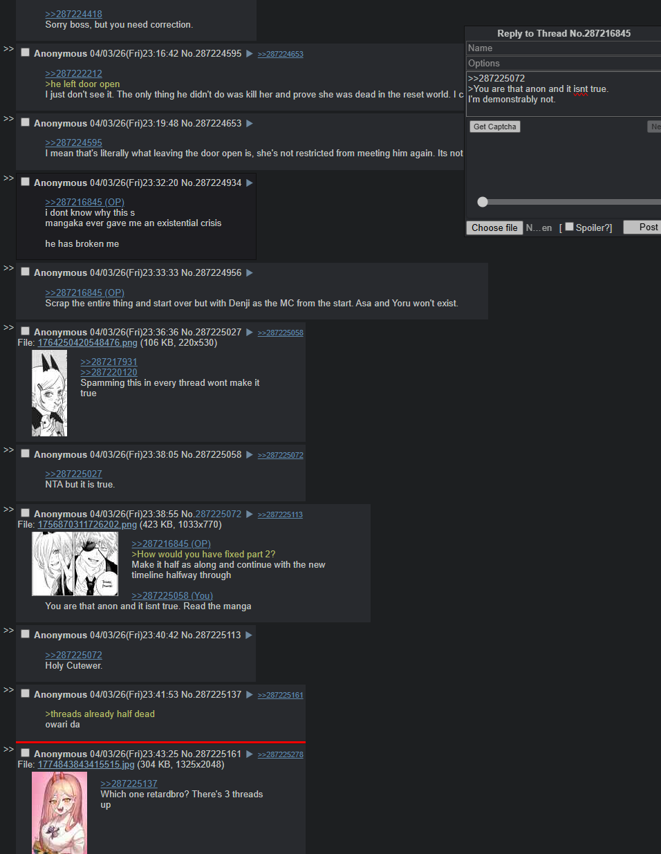 And I'm not going to entertain the thought because there isn't much of a point to it honestly. The manga ended and we're long past the Reze Arc to care.