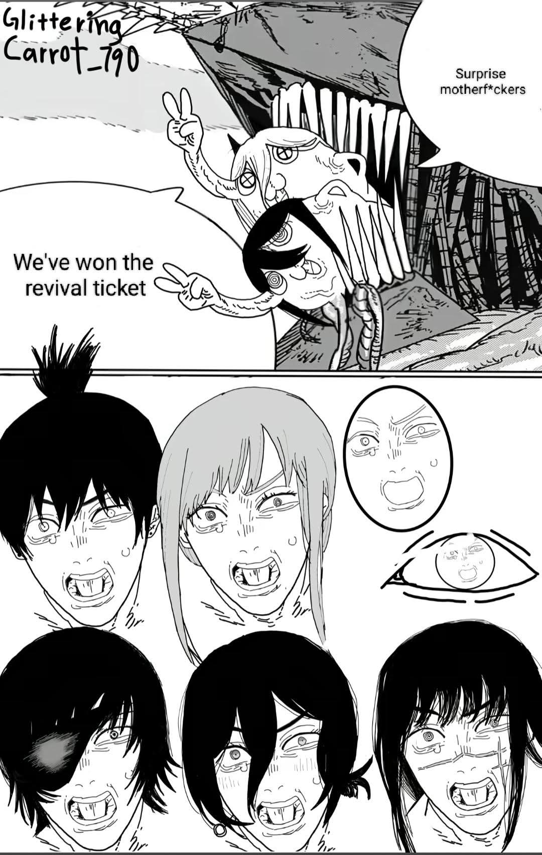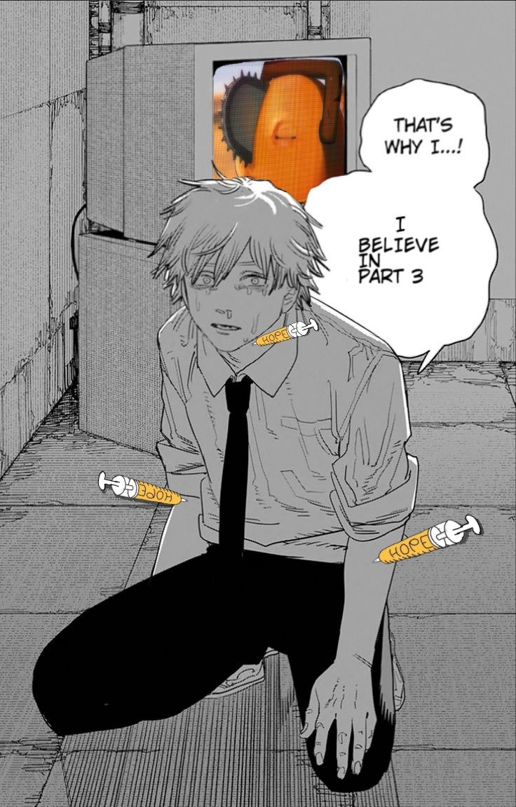 Are you asking if we want it or if we think it's likely to happen? Even as someone who liked the ending, I don't want a part 3. FJMT's clearly done with this shit and if he's done then so am I. Is it possible? I guess anything's possible, and the end was just open-ended enough that if he wanted to do a sequel or even just some spinoffs, he could do that pretty easily. But even if he does, I don't think he'll be returning to CSM for a long long time.