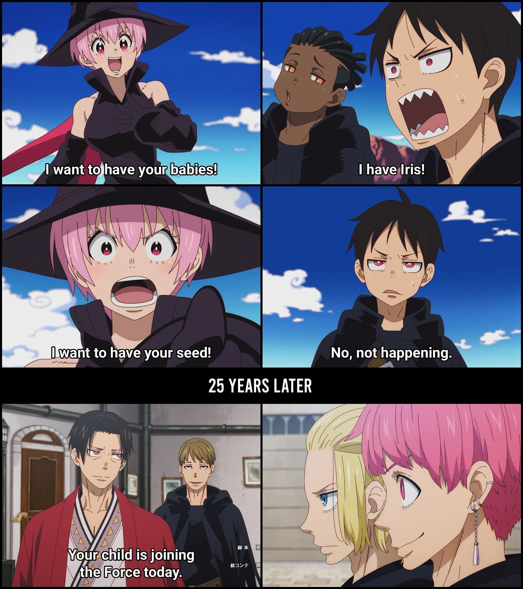 So the pinky haired psycho turned good and joined Shinra's harem?