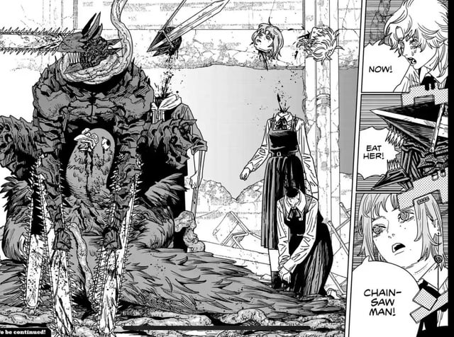 You save that for the finale and do epilogue with asa being pregnant and denji smiling like a retard