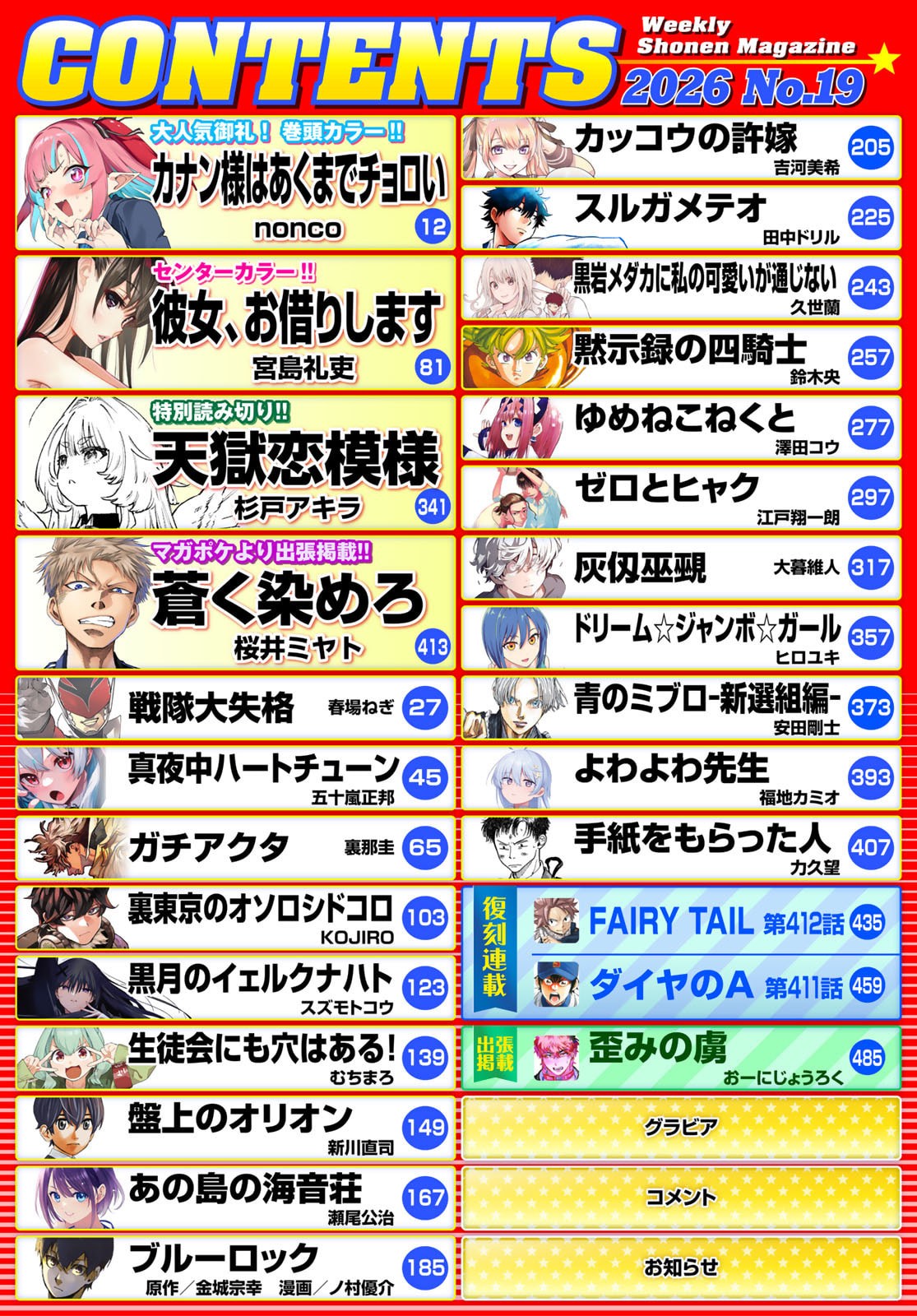Issue no. 19, 2026Color pages for Kanon and KanokariFairy Tail's back