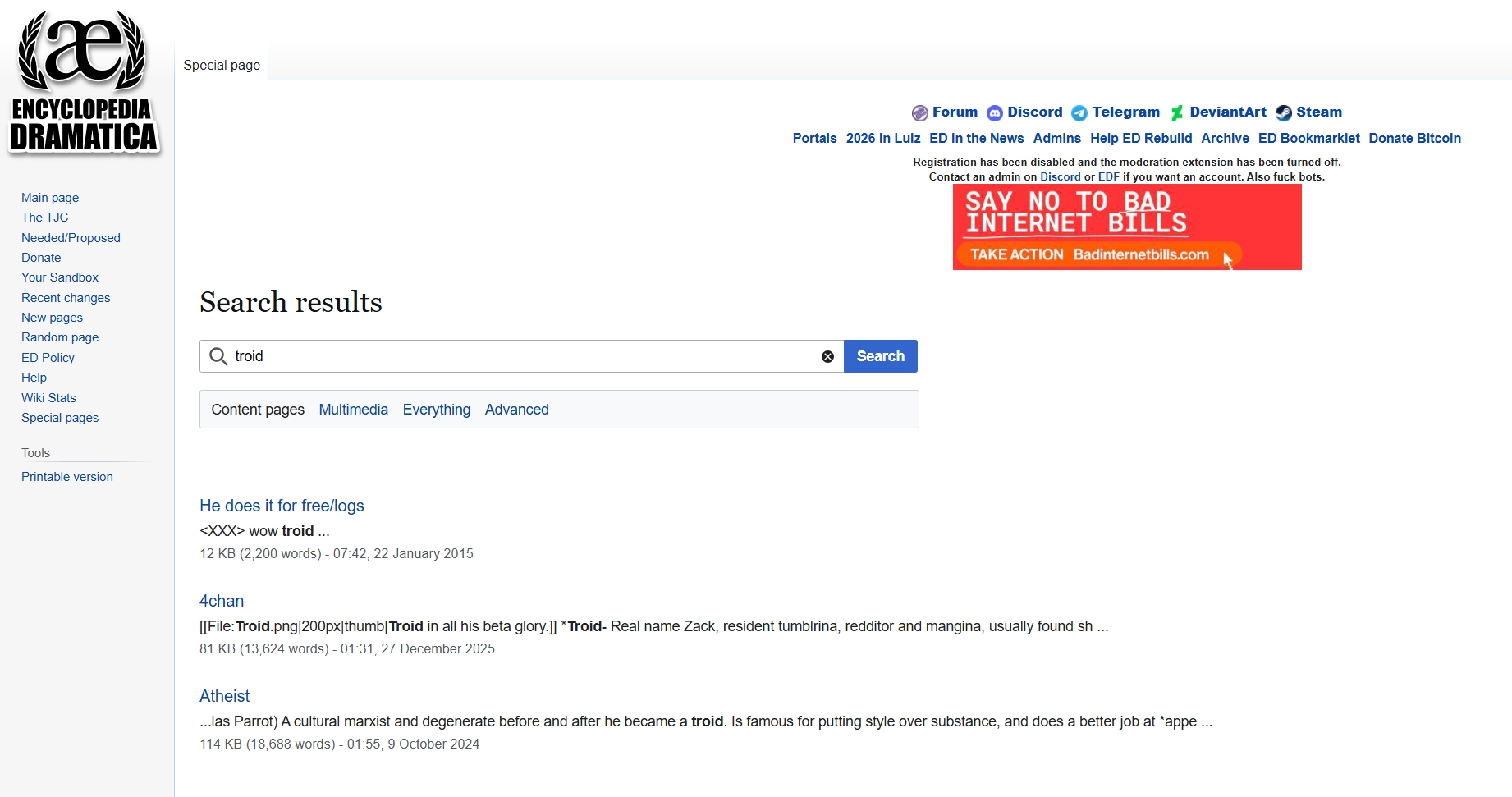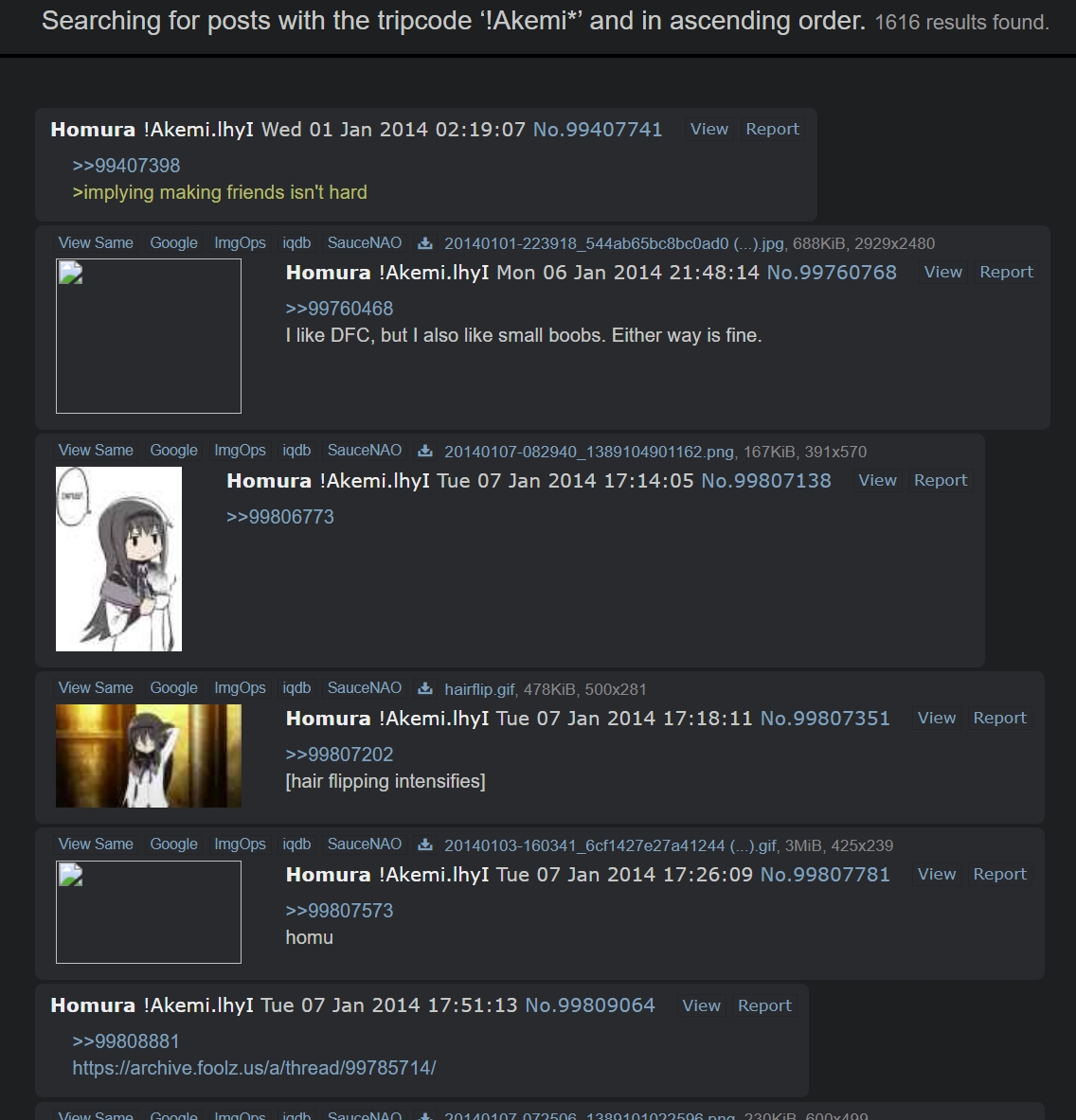 https://desuarchive.org/a/search/text/%22Encyclopedia%20Dramatica%22%20akemi/https://desuarchive.org/a/search/text/encyclopediadramatica%20akemi/https://desuarchive.org/a/search/text/lurkmore%20akemi/https://desuarchive.org/a/search/text/%22meta%20history%22%20akemi/Apparently there was someone from back then (totally not ACK) who kept repeating that akemi and troid were mentioned on encyclopedia dramatica and lurkmore wiki. Yet searching them on those wiki gives no results. That guy (again, definitely not ACK) was a liar.