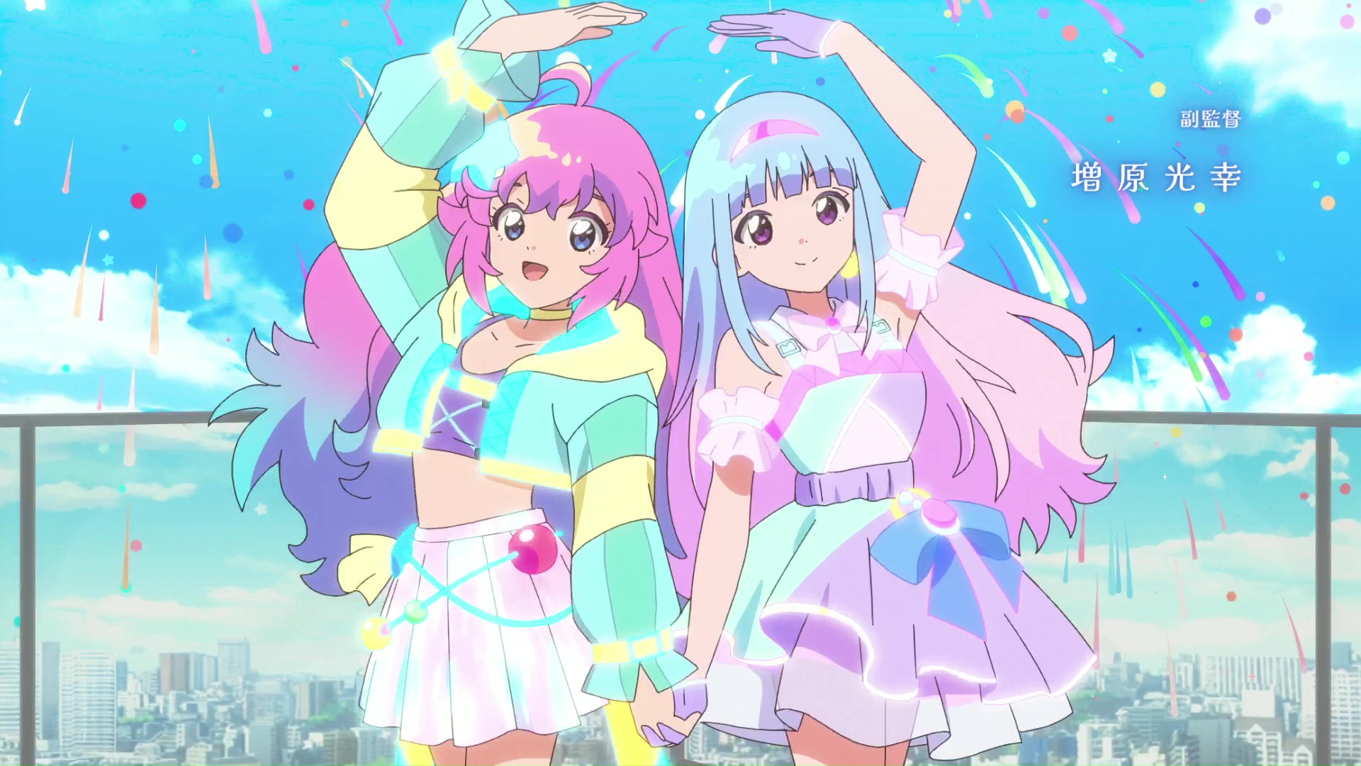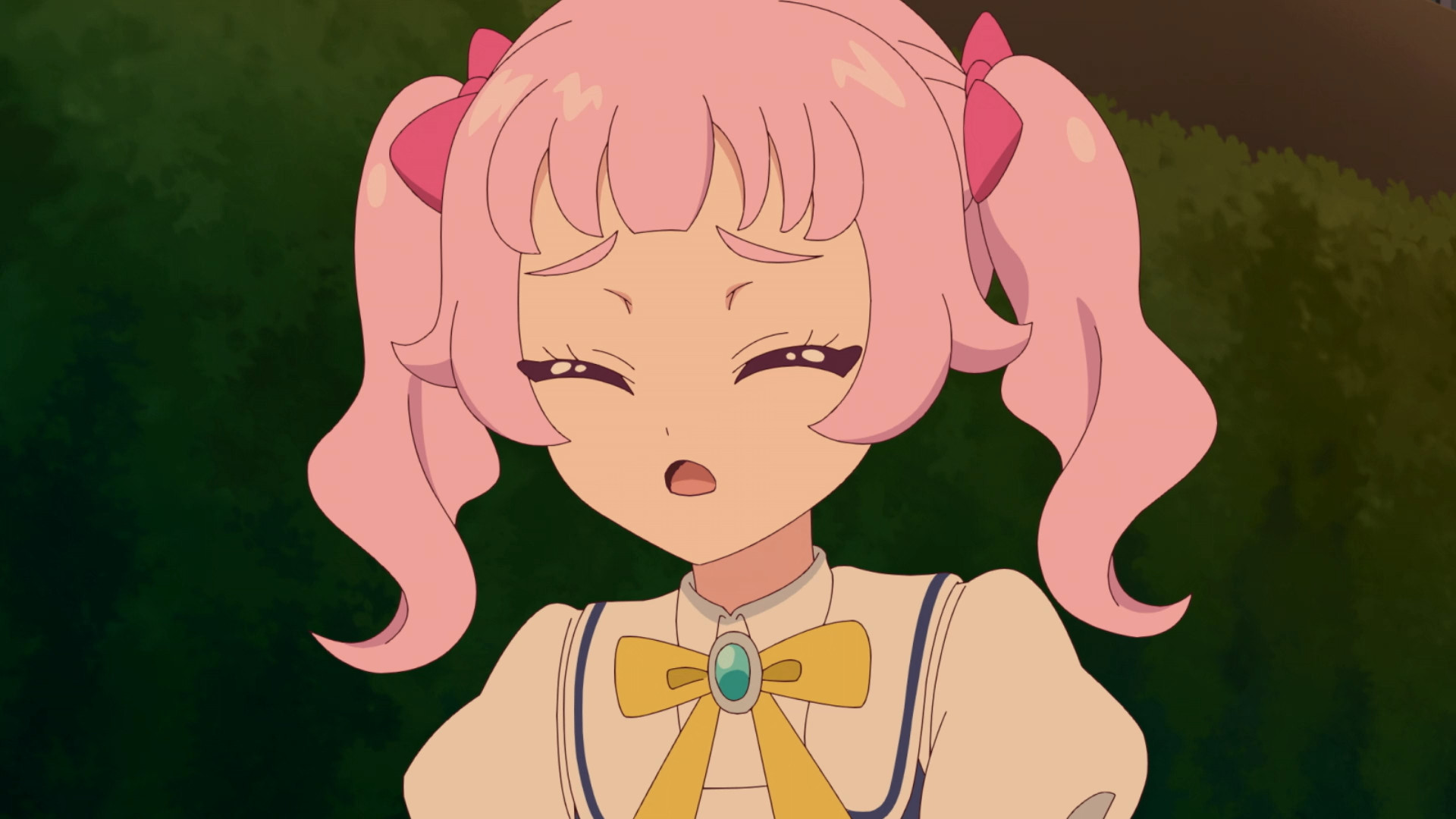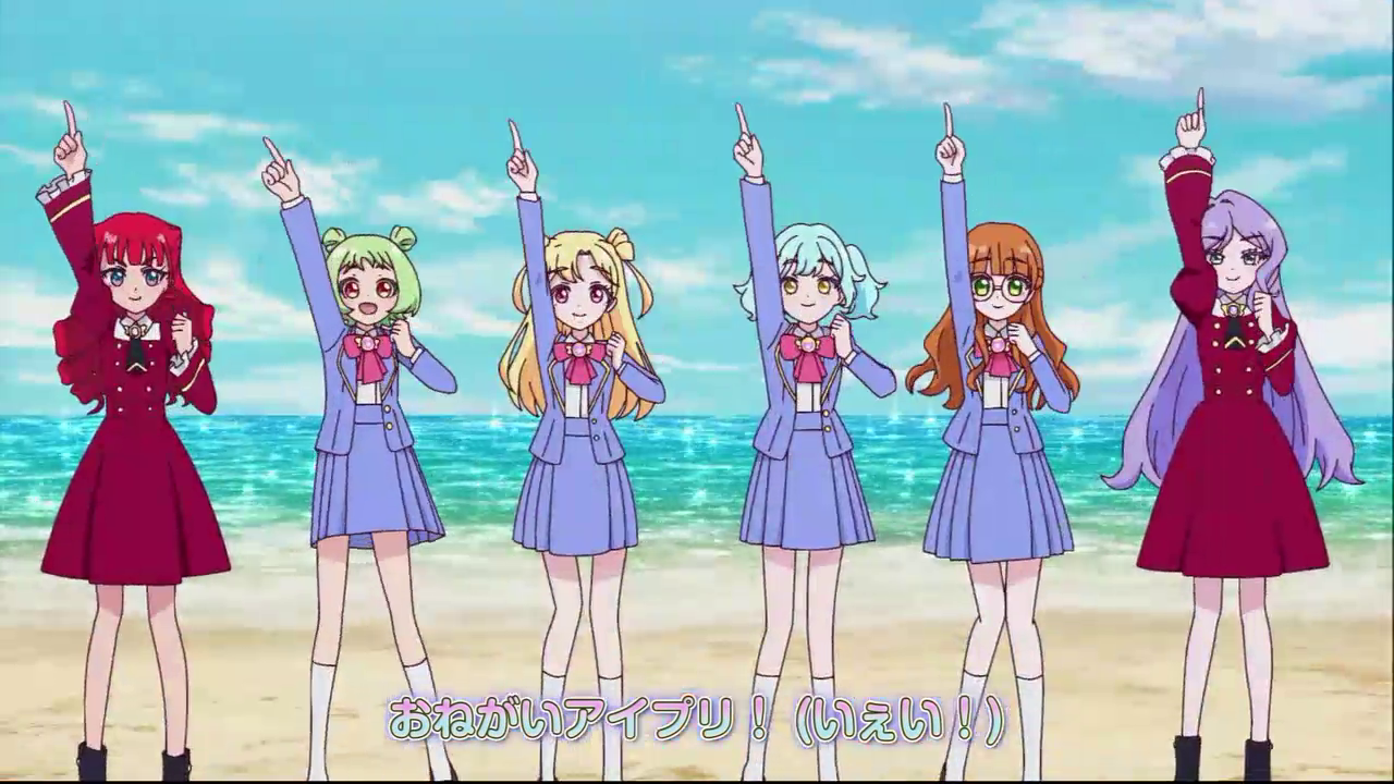 A very nice first episode, I liked it more than Himitsu's first. The setting being a comfy beach side town is nice, but let's see how well they use it. The AiPri verse being only a castle makes me think it won't be a place where they hang out like in Himitsu and will only be used for lives, which I would appreciate if that were the case as it was never a very interesting place, but perhaps they add more locations later who knows. Also is the narrator supposed to be the goddess? I thought Fortu was the goddess but they have different voices. I liked Aoi's voice and Inori was better than I expected her, and it was a great decision to get rid of the aimu, though DJ Priusa's voice doesn't fit her (him??) very well.