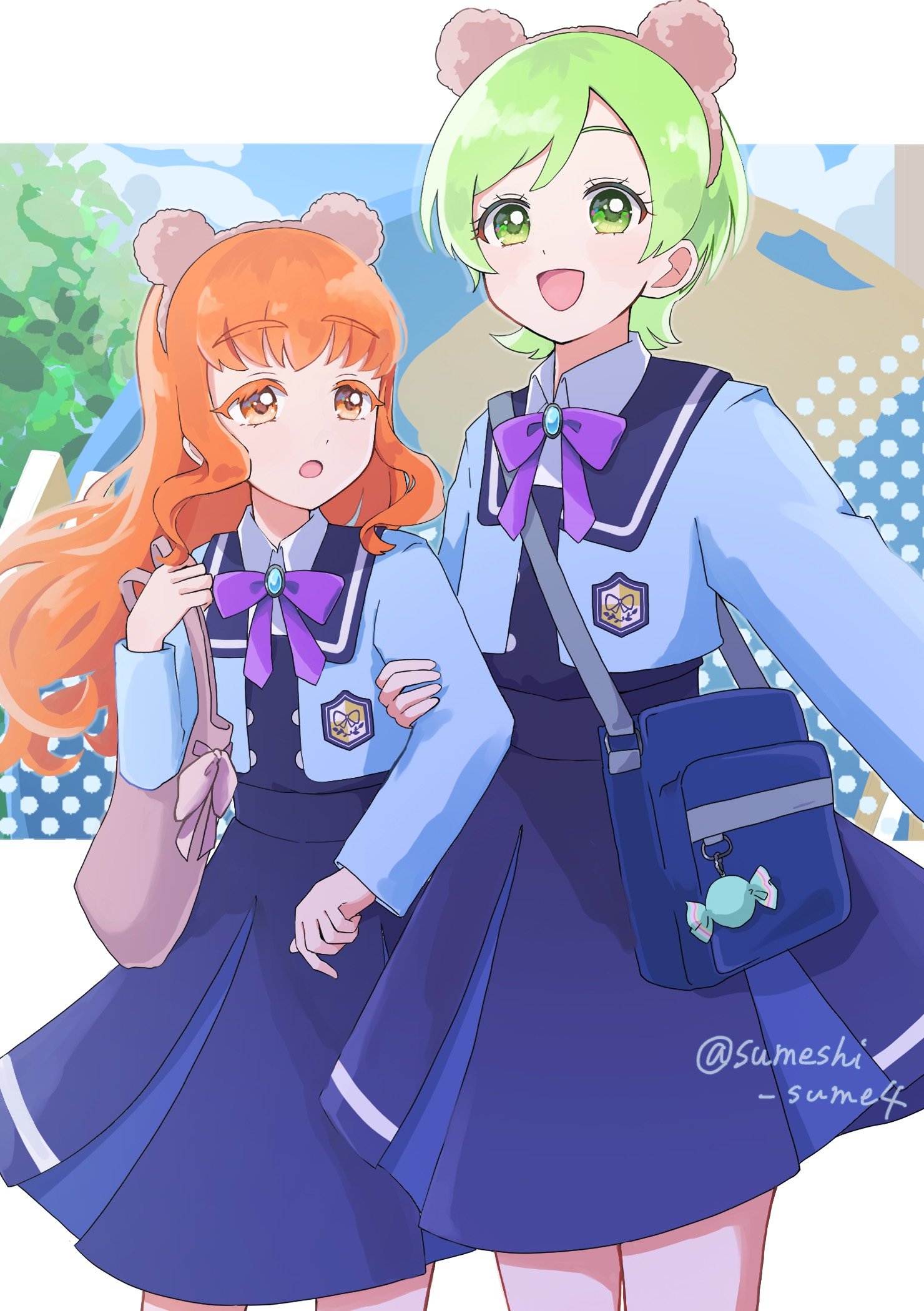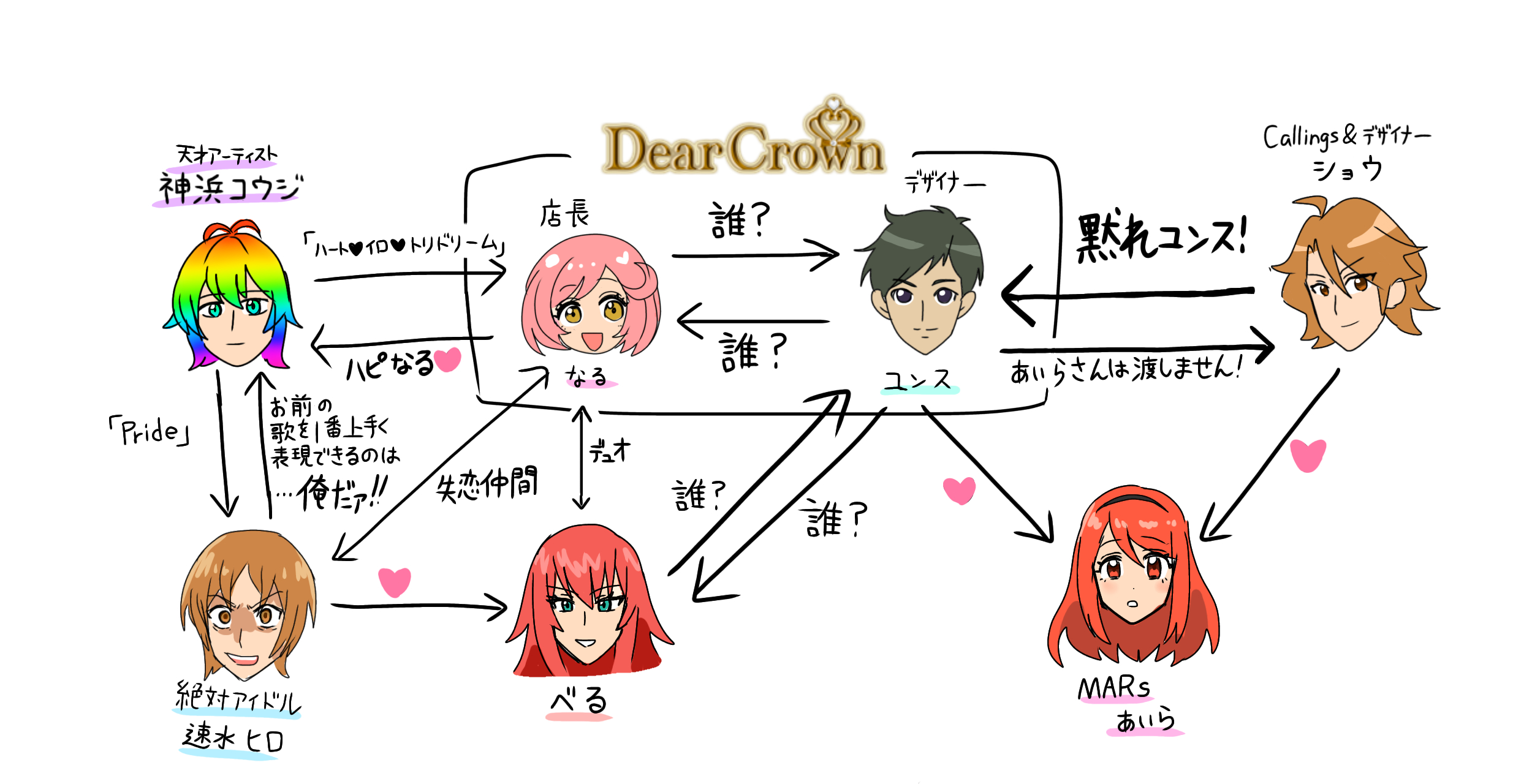 Absolutely super cuteGirlish uniformsGlittering classrooms with the best teachersWait a minute, over here someone's stylish and cuteWith studies and lessons better than anywhere elseA big (Bright) Cafeteria (La la lunch)And a rainbow arching over the fountain (Wonderful)It's nice (I agree) You are too (All of us)I finally understand (Oh Yeah!)That we feel the same (Yes!)And now... WeRaise the volume in our heartsIn the sparkling, colorful school daysEven with our different uniformsI'm sure we feel the sameI love my friends who try their hardestI love going towards our dreams everydayThe moment our voices overlapLook, it's a Happy Crescendo