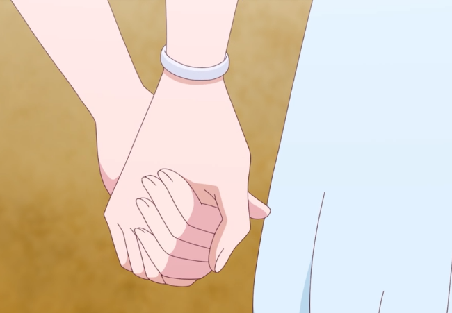 >Inori proactively says hello to all kinds of people with a smile. It seems she wasn't just greeting the people, she was greeting the town and its sights too.Himari would never.