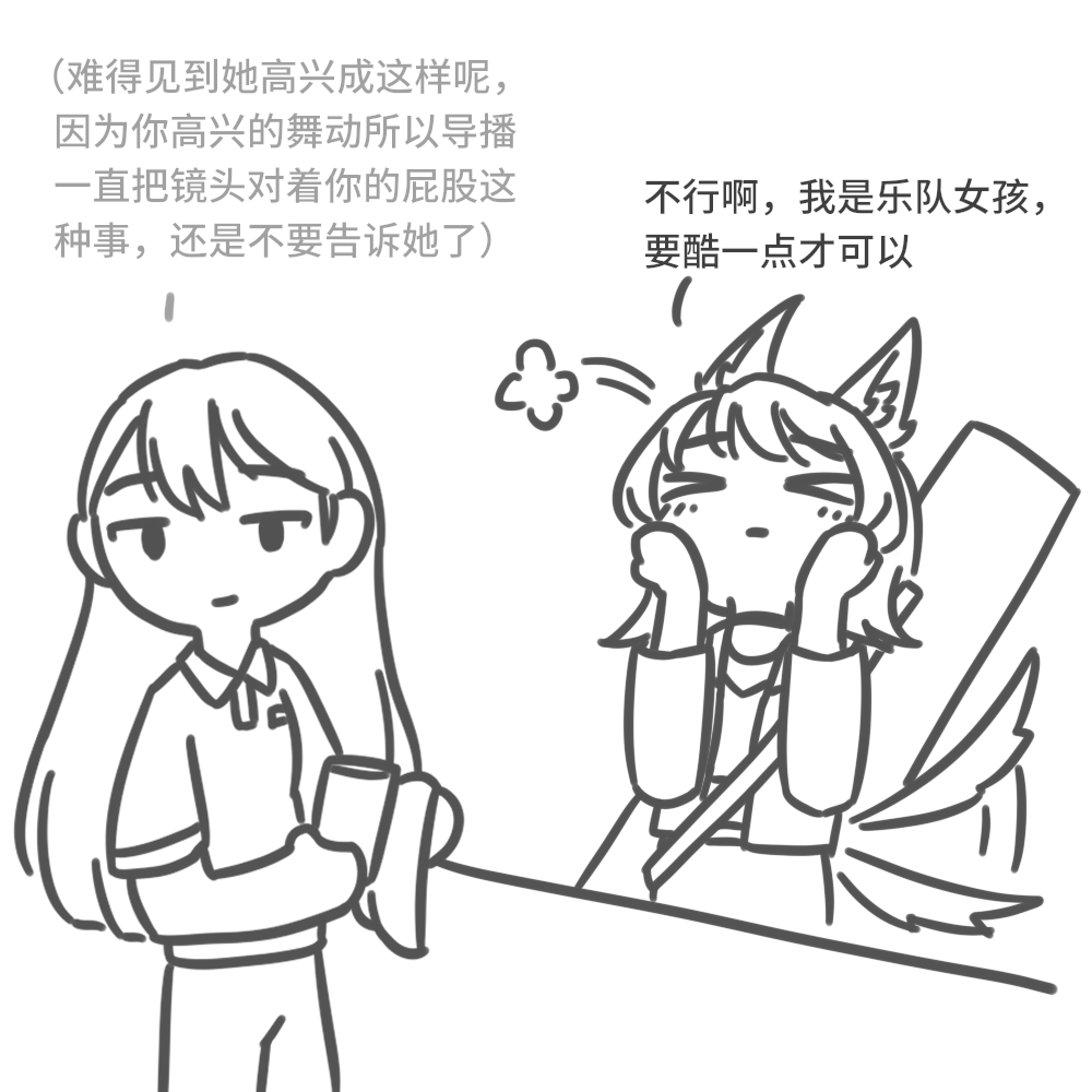 >>287478245>T: (It's rare to see her this happy. As for the matter of the director keeping the camera focused on your butt because of your joyful dancing, I guess I won't bring that up.)>U: Ahhh no! I'm a band girl! I gotta be cooler than this!
