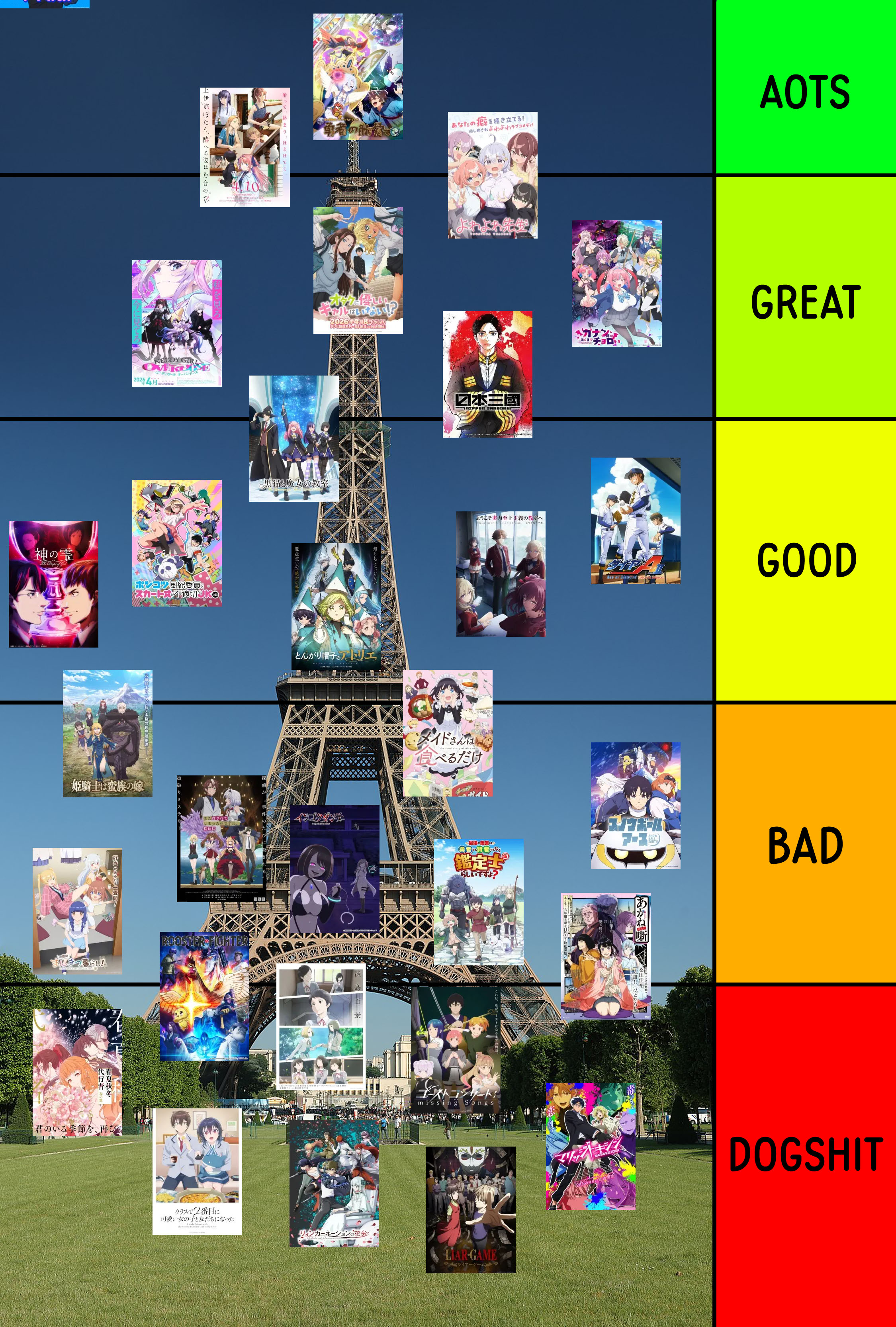 I'm only sticking with PonSuka and Nakamura-kun (yes I know about the censorship) this season. I watched more stuff in Winter 2026.