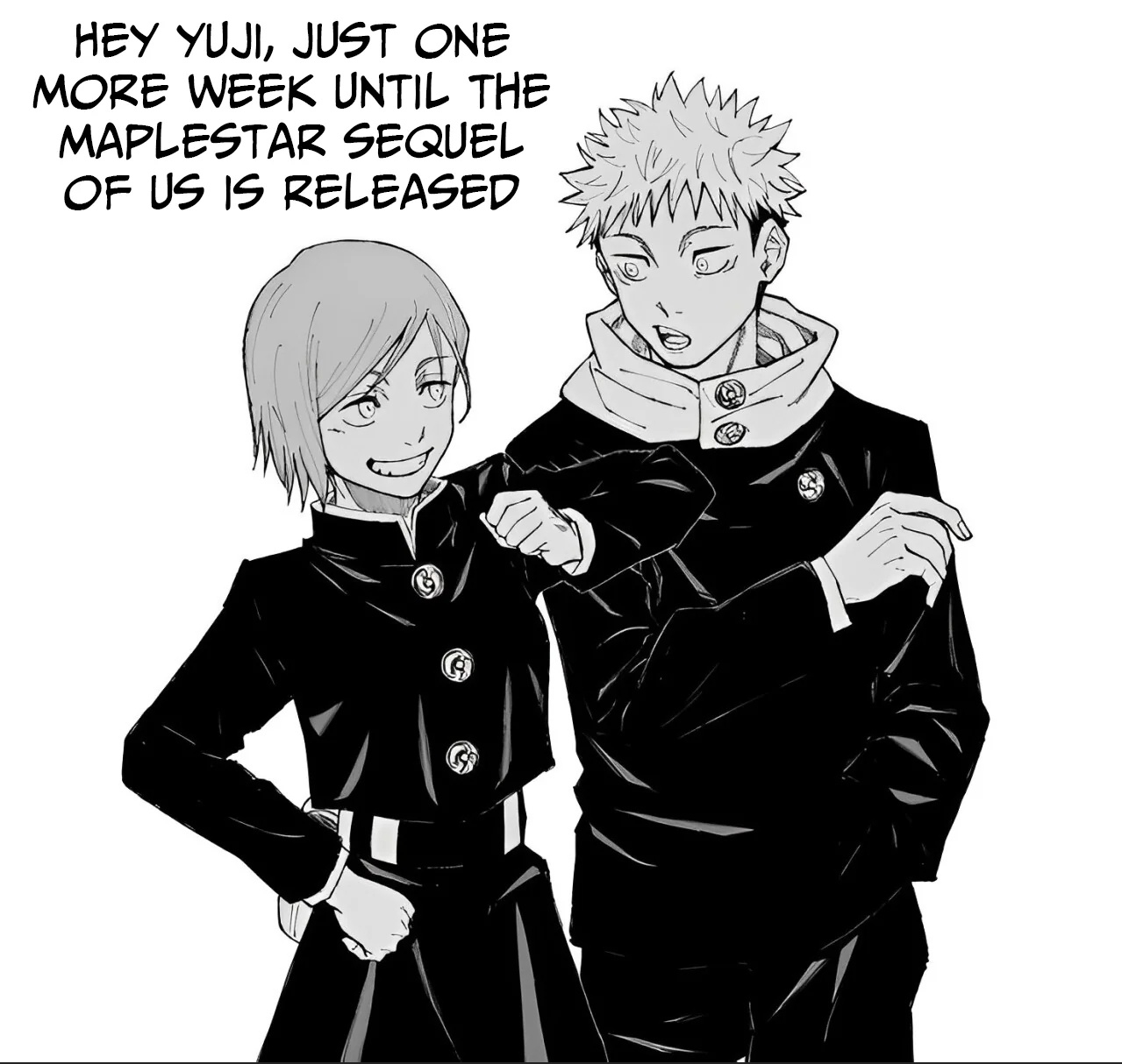 >>287584361Pretend Yuji isn't complaining about holding the bags. Or that he's only doing it to mess with Nobara.