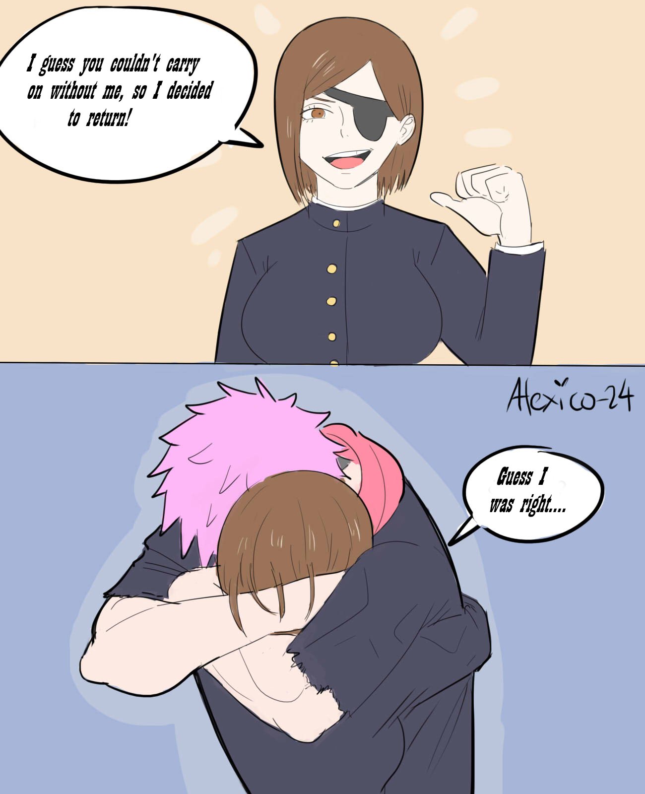 Yeah, I also agree about artists exaggerating her atributes, she is already perfect for her size. And if it is porn, I can't stomach seeing her paired with anyone but Yuji, he is the only guy she would ever go for, despite what she said.I don't care if it's AI as long as it's well-made and canon-plausible.