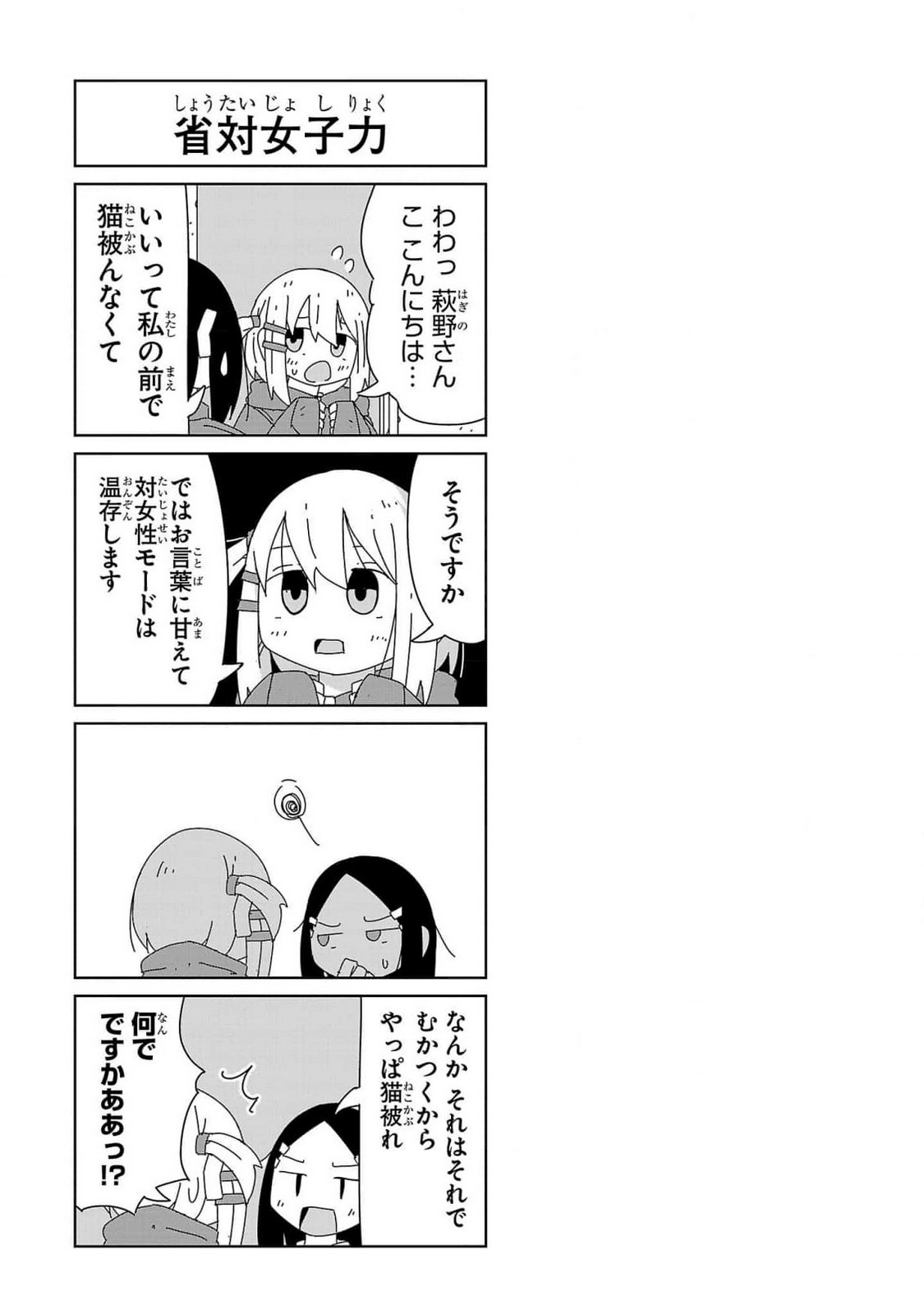 Saving Girl(-Facing) Power1.>W-Wah, Hagino-san, g-good morning...>It's alright, you don't have to pretend with me2.>Is that right?>Then I'll take up on your offer and hold off on my girl-facing mode4.>Somehow that's also irritating in its own way so just pretend after all>But whyyyy!?