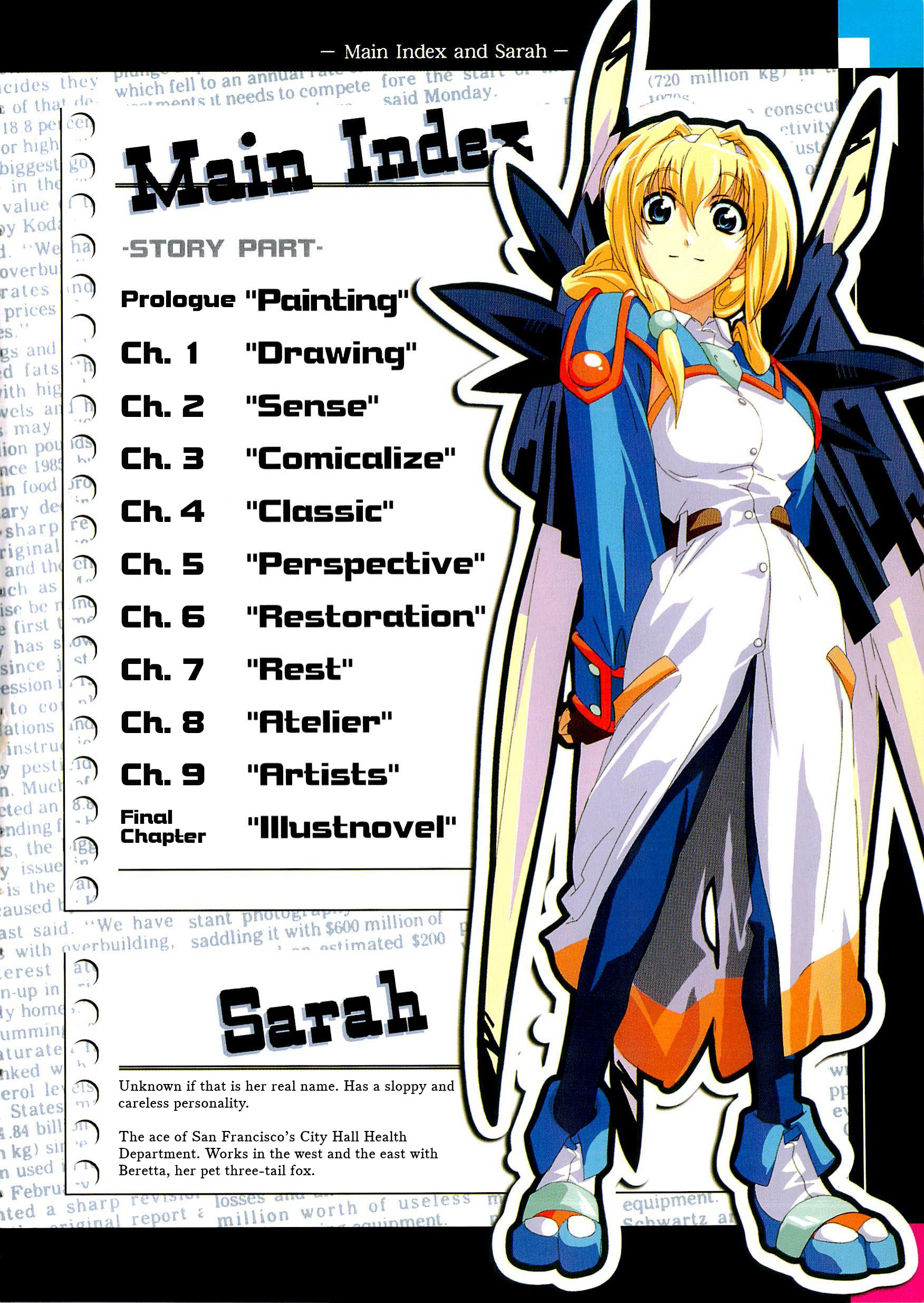 One thing in particular i'd like to point out is that, ever since the third City Series book iirc, Satoyasu has been the main artist for most of Minoru-sensei's universe. City Series, Owari no Chronicle, Horizon and Godless Planet. He gives a very distinctive style to these eccentric worlds, from the very unique clothes, mechanical design and very sexy yet cute girls.Souga Toshi S. F. Is a treat to read solely because he is the main artist. That said, i do like to mention that, in a personal note, i do like his older art a bit better.