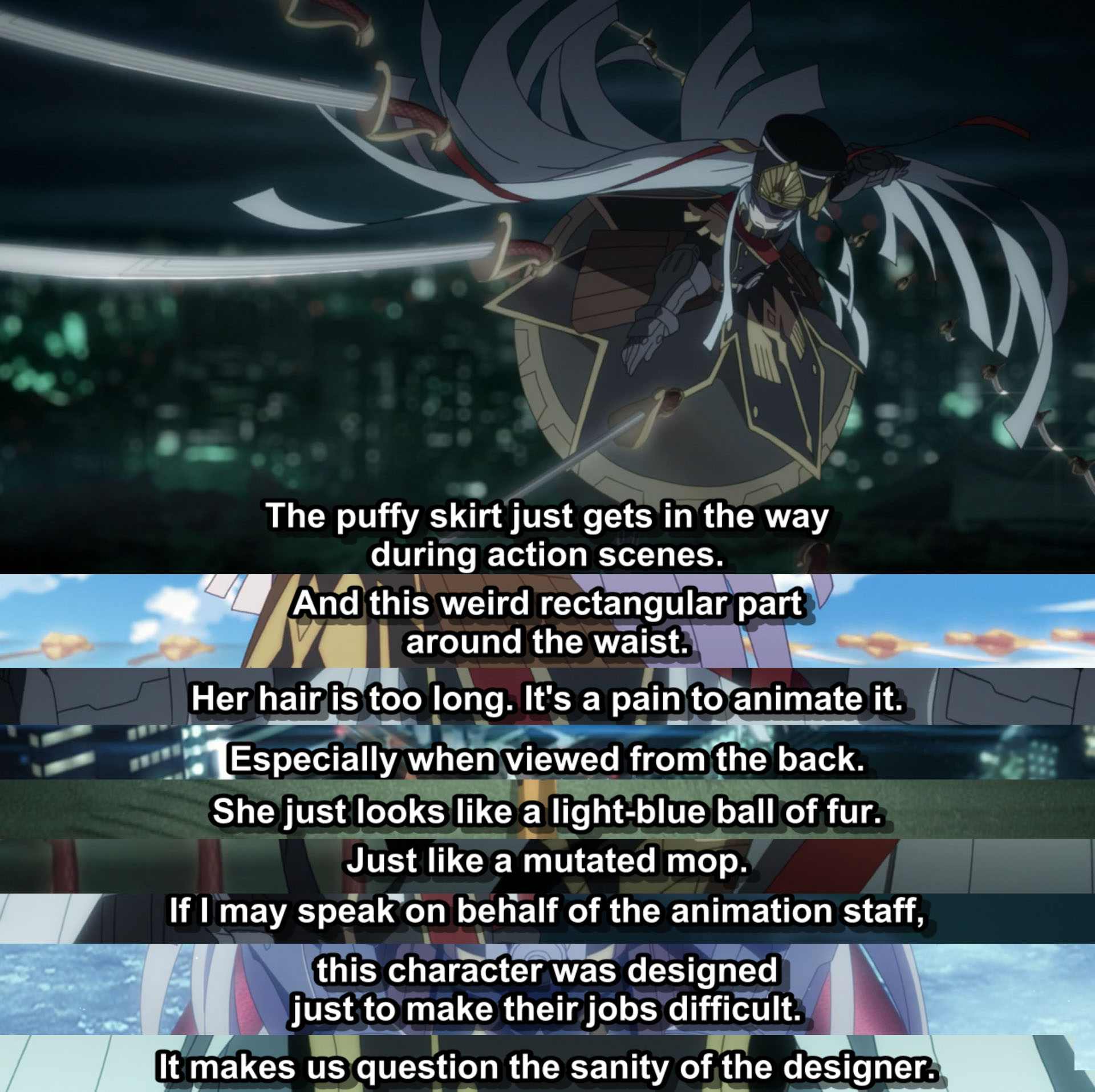 >design a character with perfect hair.>force animation scenes of the character hovering in the sky, flying at high speed, fighting, ETC>Give a smug grin as the animation staff dedicates a minute of recap time in your anime to bitch about the character's hair design.