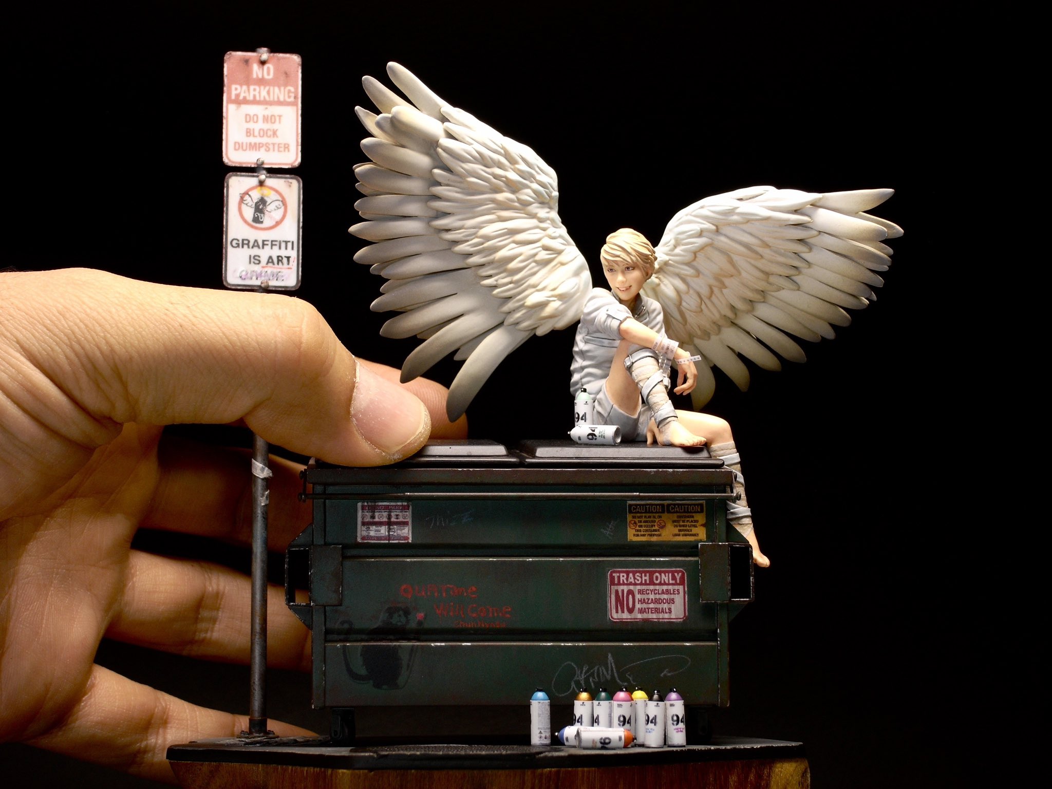 >Angel sitting on top of anon's figure collection