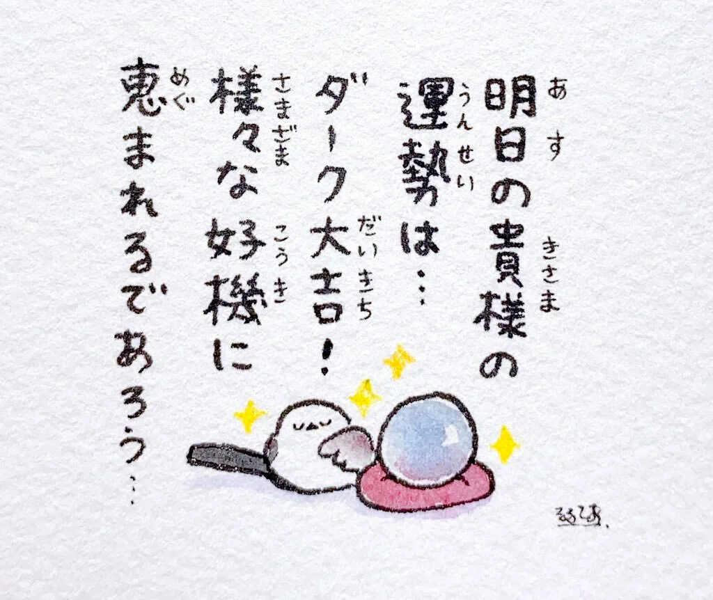 Your fortune for tomorrow is… Dark Excellent Luck! You will surely be blessed with various opportunities!