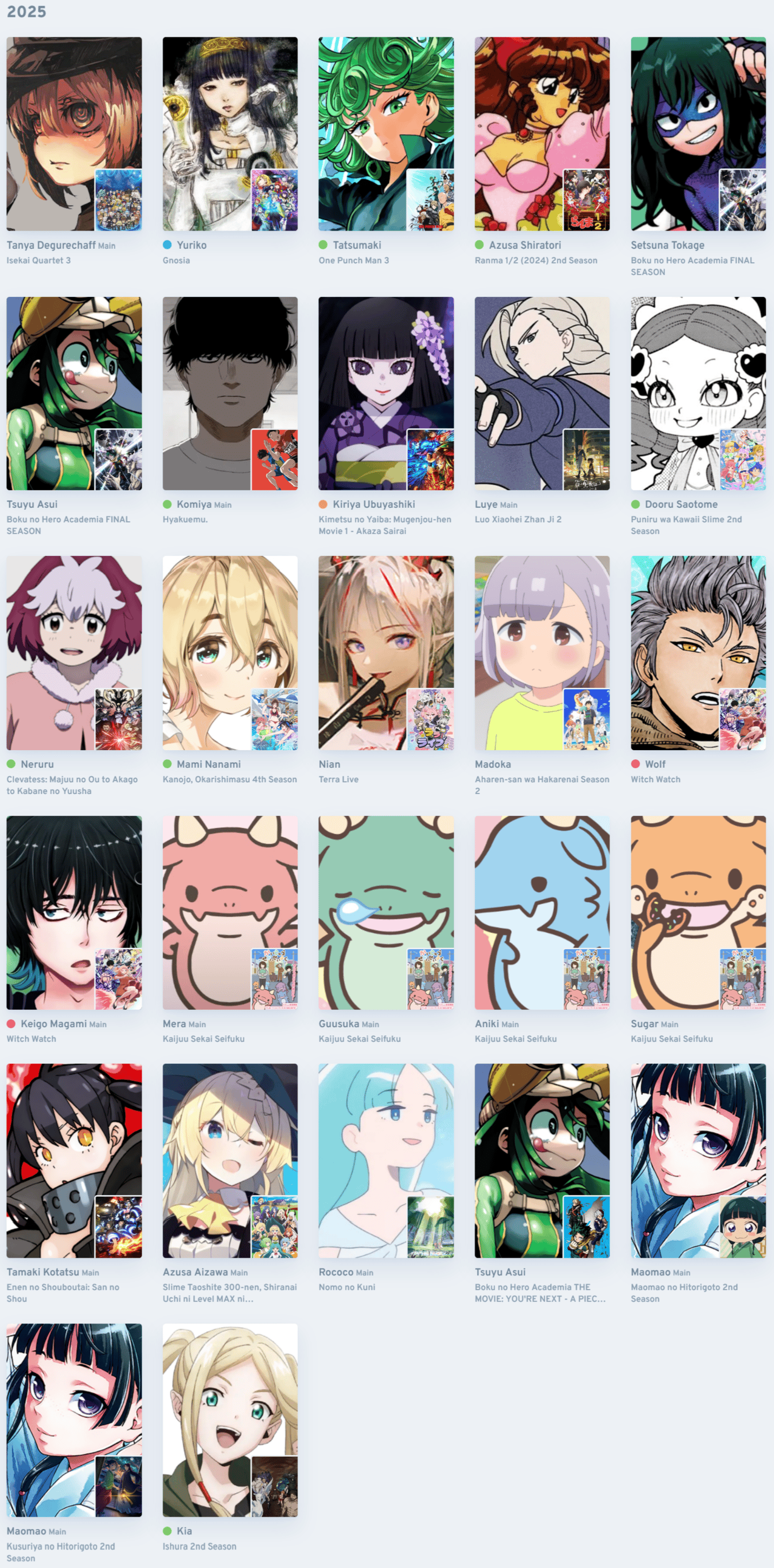 >>285258265It's funny that Yuuki Aoi's image shows Kia (from Ishura) when Kia didn't say a word in the second season of Ishura.And don't put Maomao's image, who is the reason she won this year. Or Neru from Clevatess.