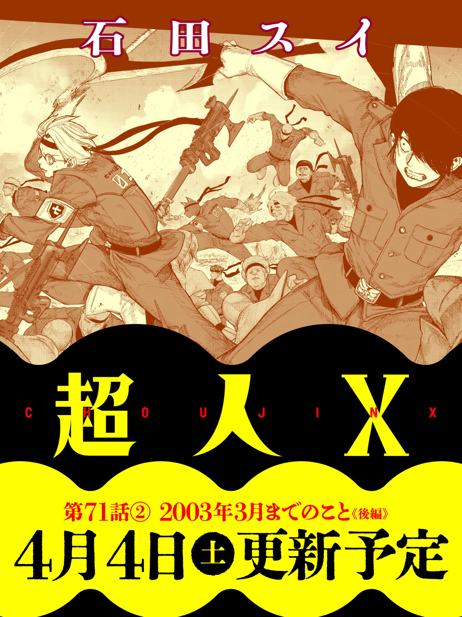 Chapter 71.2 tomorrow 12pm JST>Summary: Ely, who has become a prophet, and Yamato Mori, fighting on the front lines. Each carrying their own struggles...