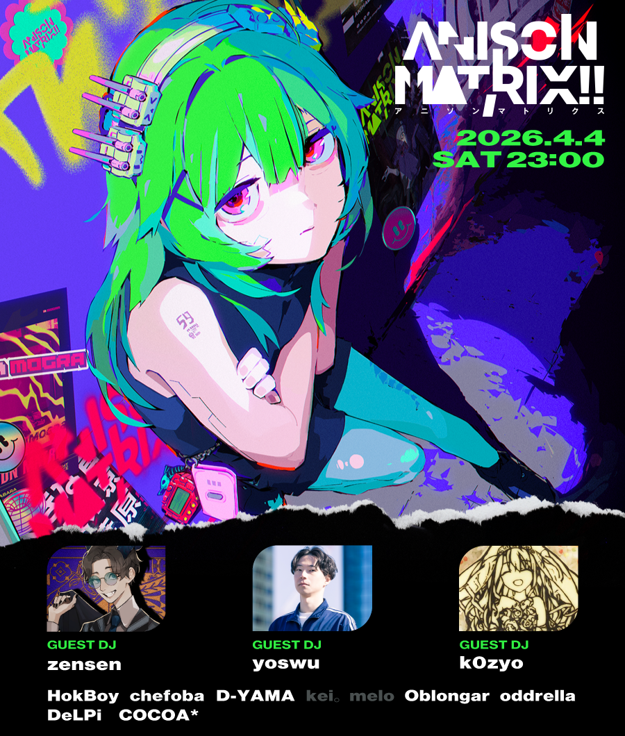 Have you done your yearly hanabi visit and hid those eggs for tomorrow? No?! Jesus sama would be very disappointed, but that does not matter because it's the first Saturday of the new month which means MOGRA is back for another round of ANISON MATRIX. Again, we have three (3) guest DJs: zensen, yoswu and k0zyo joining the semi regular Matrix crew as melo and kei are out. Has anyone heard from kei lately? In any case, grab your snacks and drinks because...GET IN HERE▼ TIMETABLE23:00 Oblongar23:45 oddrella00:30 zensen01:15 D-YAMA02:00 k0zyo02:45 yoswu03:30 chefoba04:15 HokBoy▼ VJComment too long. Click here to view the full text.