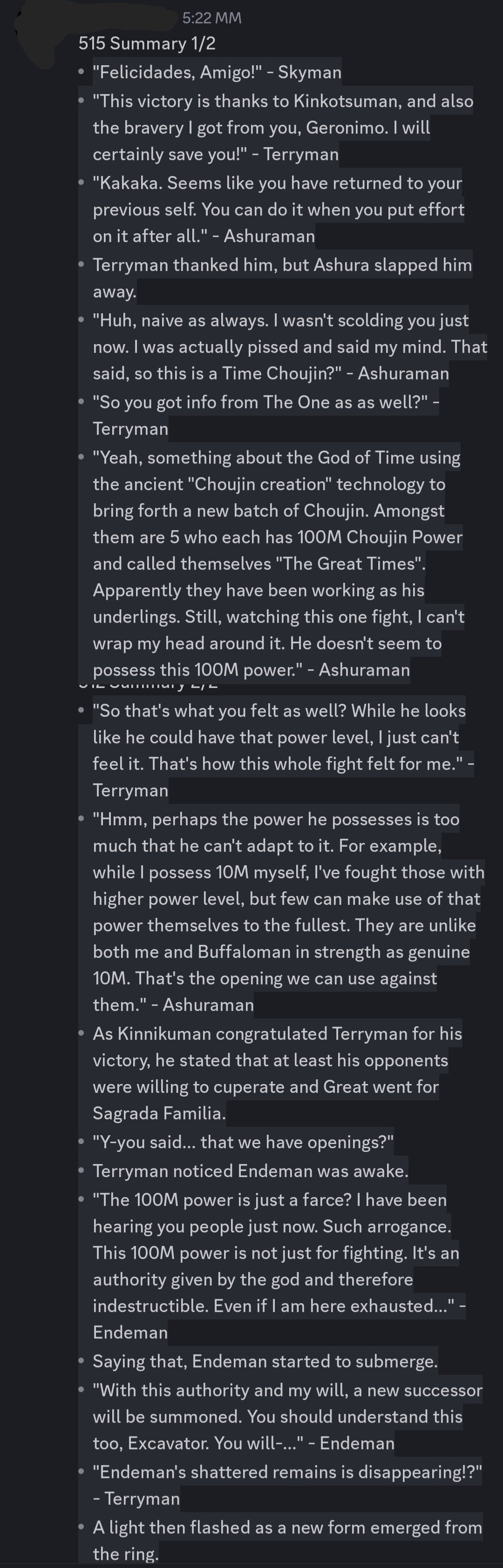 summary of last chapter someone in twitter made,so seems the five great times after being defeated can summon/create a new time choujin using their own energy, might the case of Papillonman too