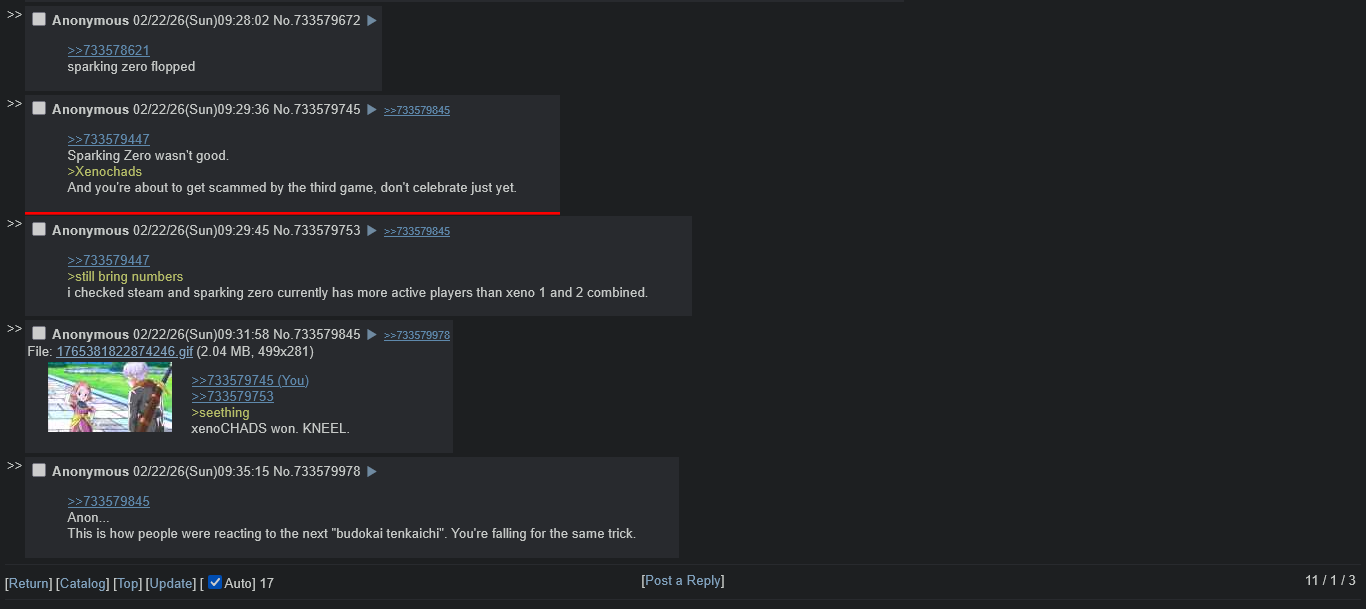 >>287583774>they announced Xenoverse 3 after Sparking Zero became a massive flop