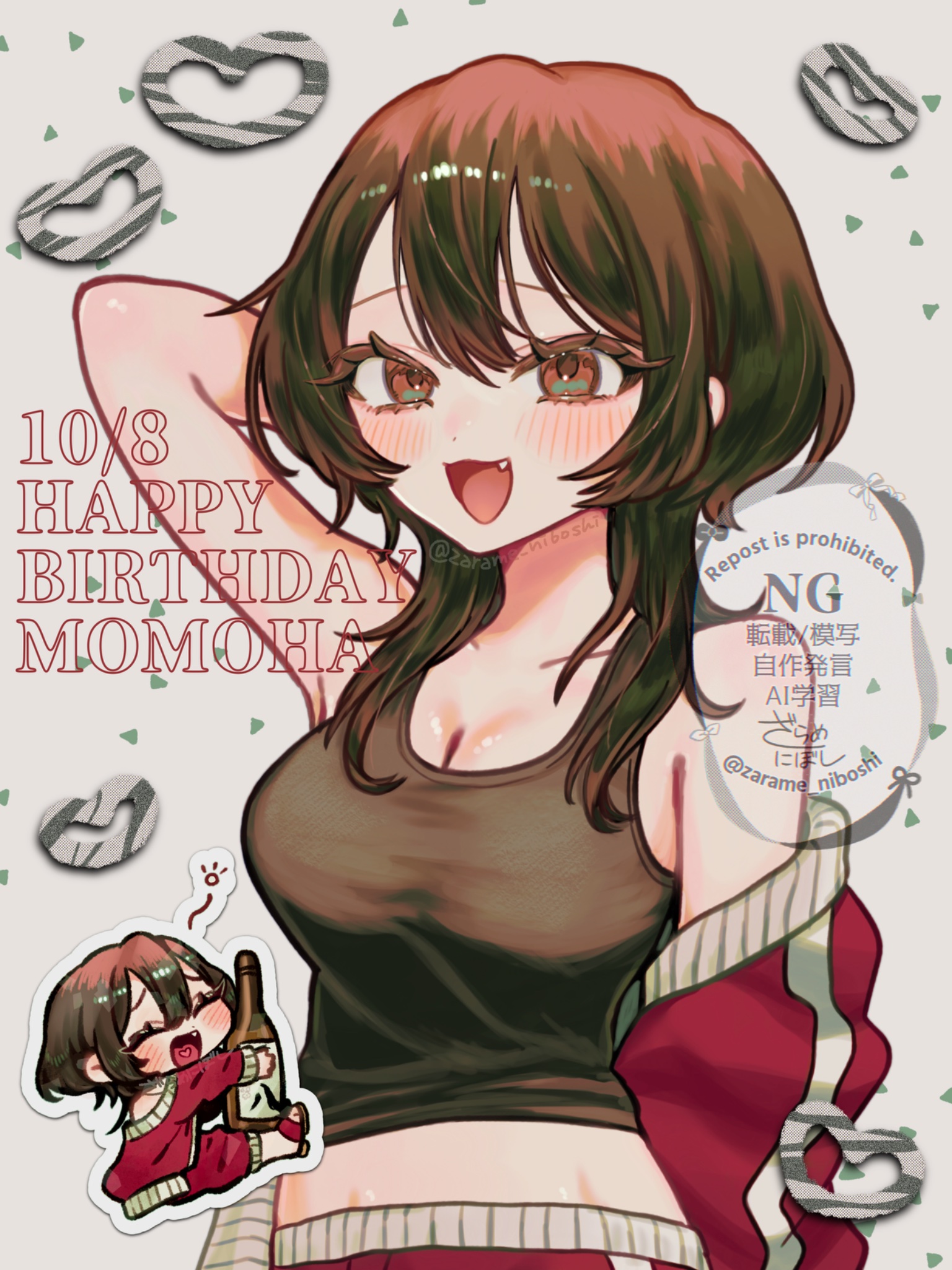 It's 10/8 in Japan now, Happy Birthday Momoha! A toast, to the greatest drunken, gambling, student-dating ethics teacher that ever lived! There's at least 108 things about her everyone loves!