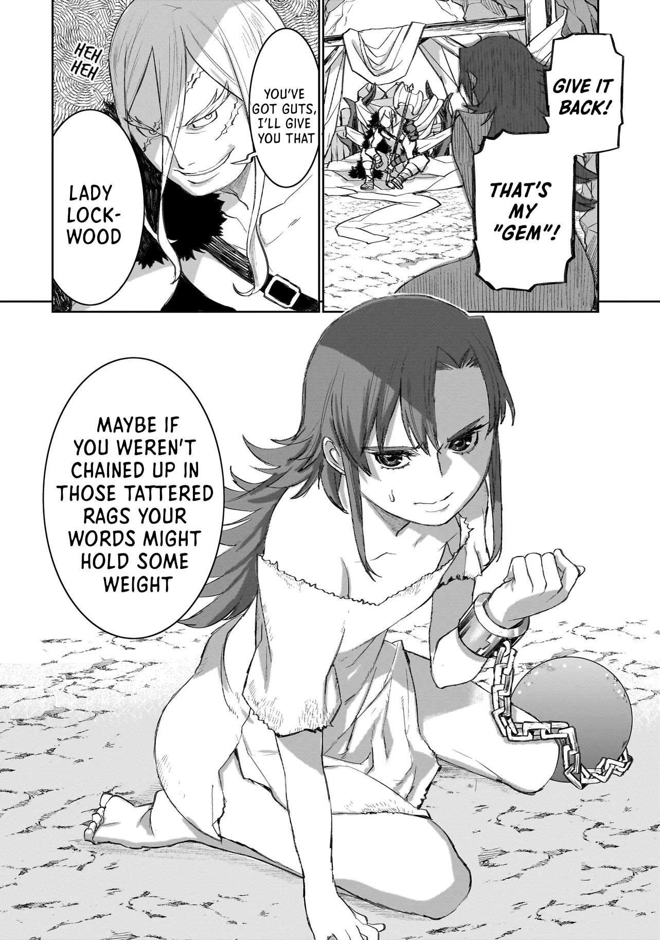 That's not a womanThat's a goblin...Have bandits really become so desperate that they lock goblins in chains and threaten to rape them?