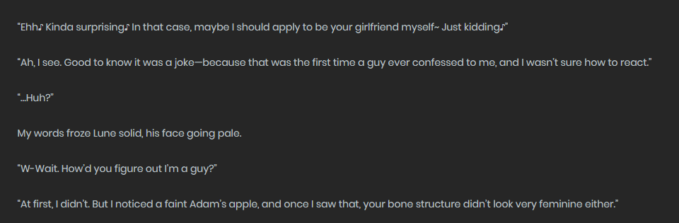 >>282992731>>282994048WeirdI saw another TL in which that character is reffered as "she".Or was it in newer chapters?