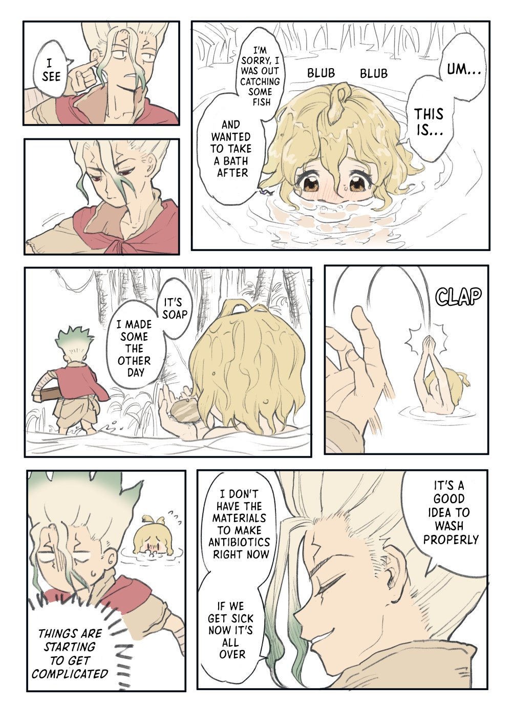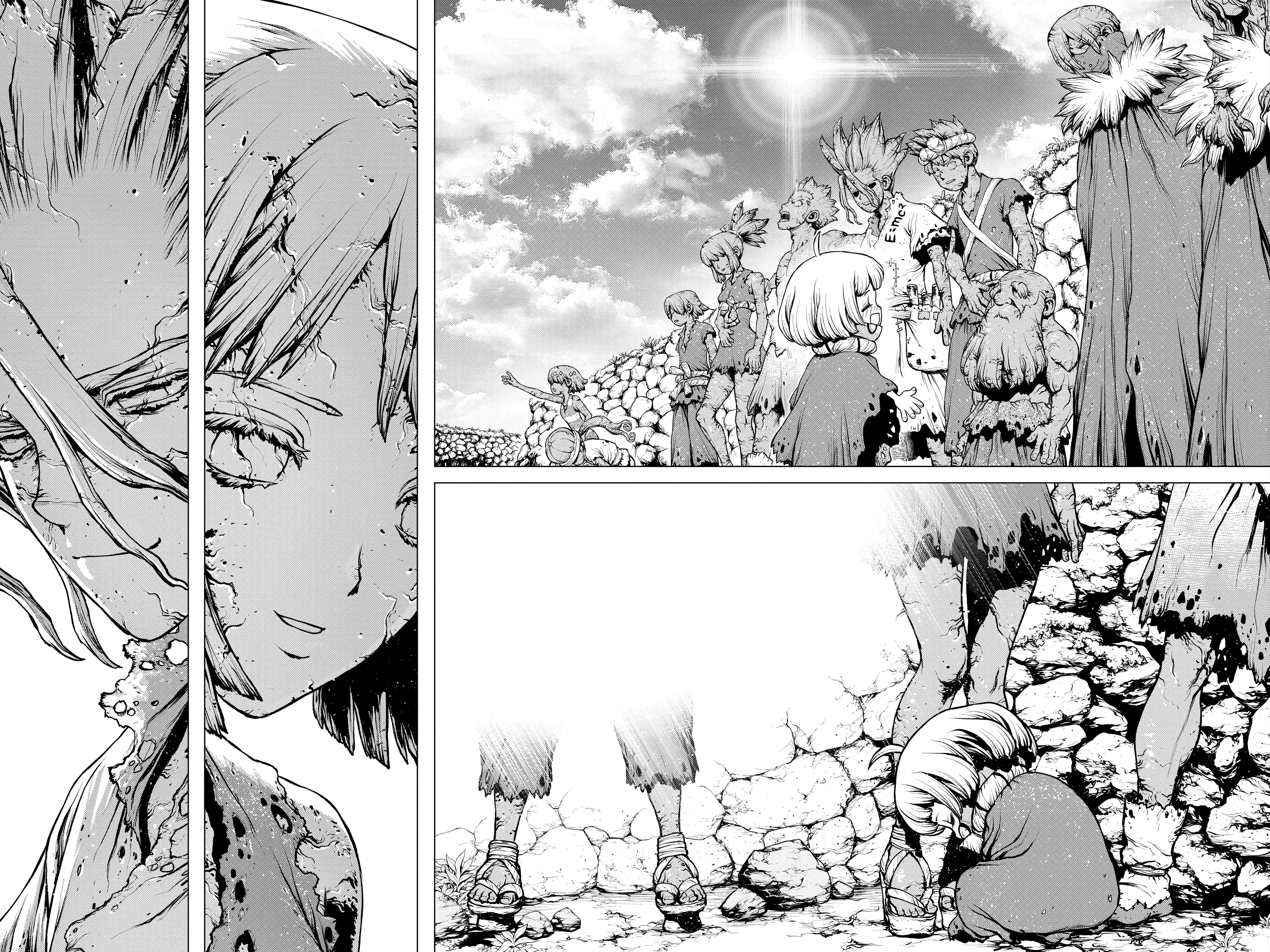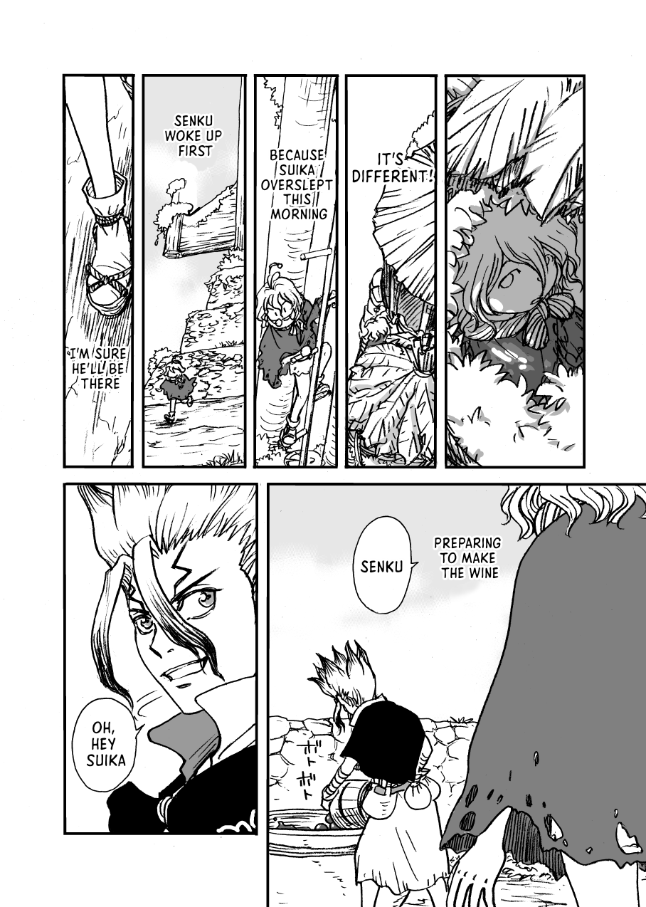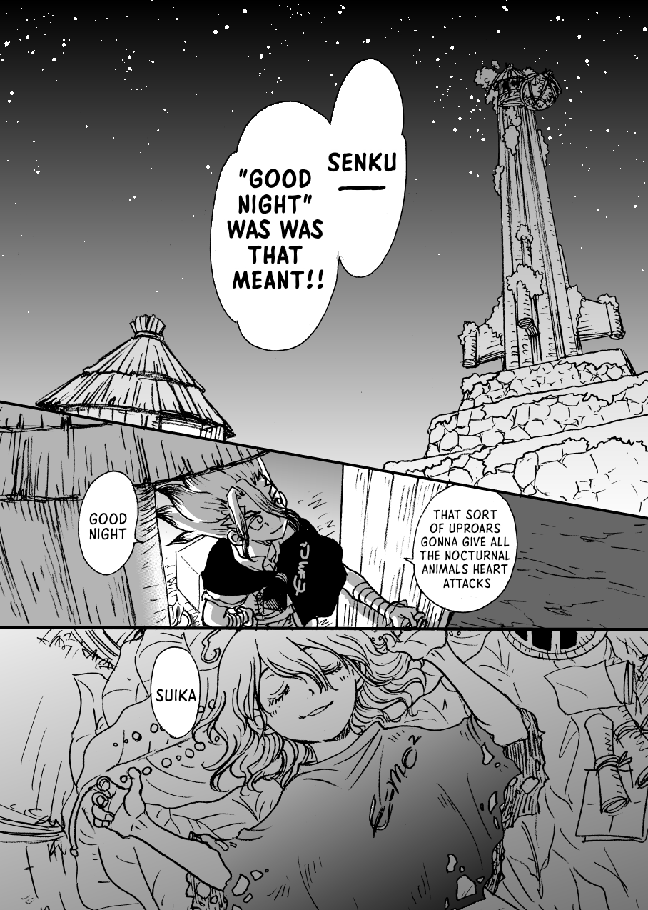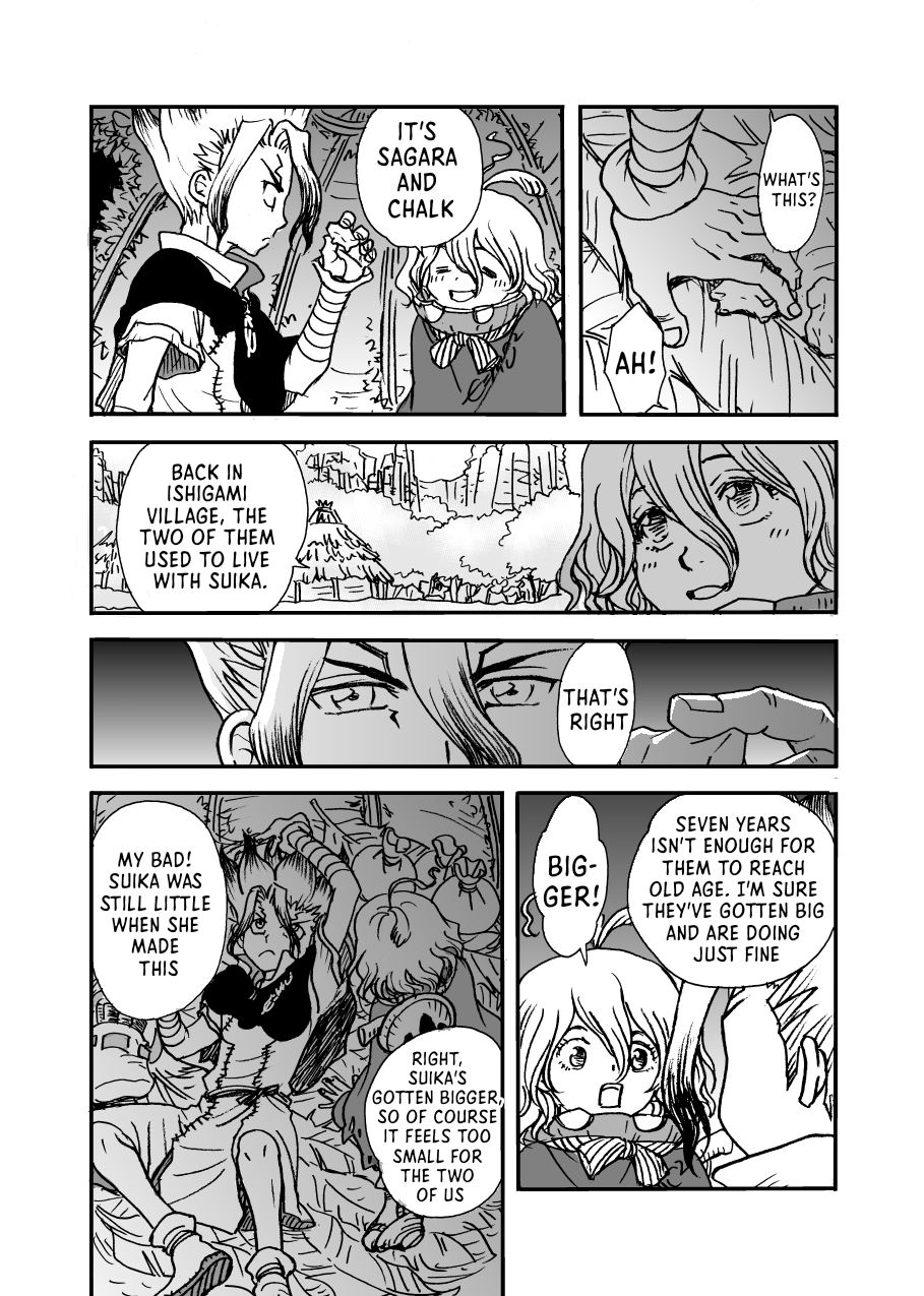 That part where she's given up on finding any intact revival fluid and returns to huddle at the feet of everyone's petrified remains hurts real bad. Poor thing. These Suika chapters were such a gut punch compared to the usual wacky bullshit the series got up to.