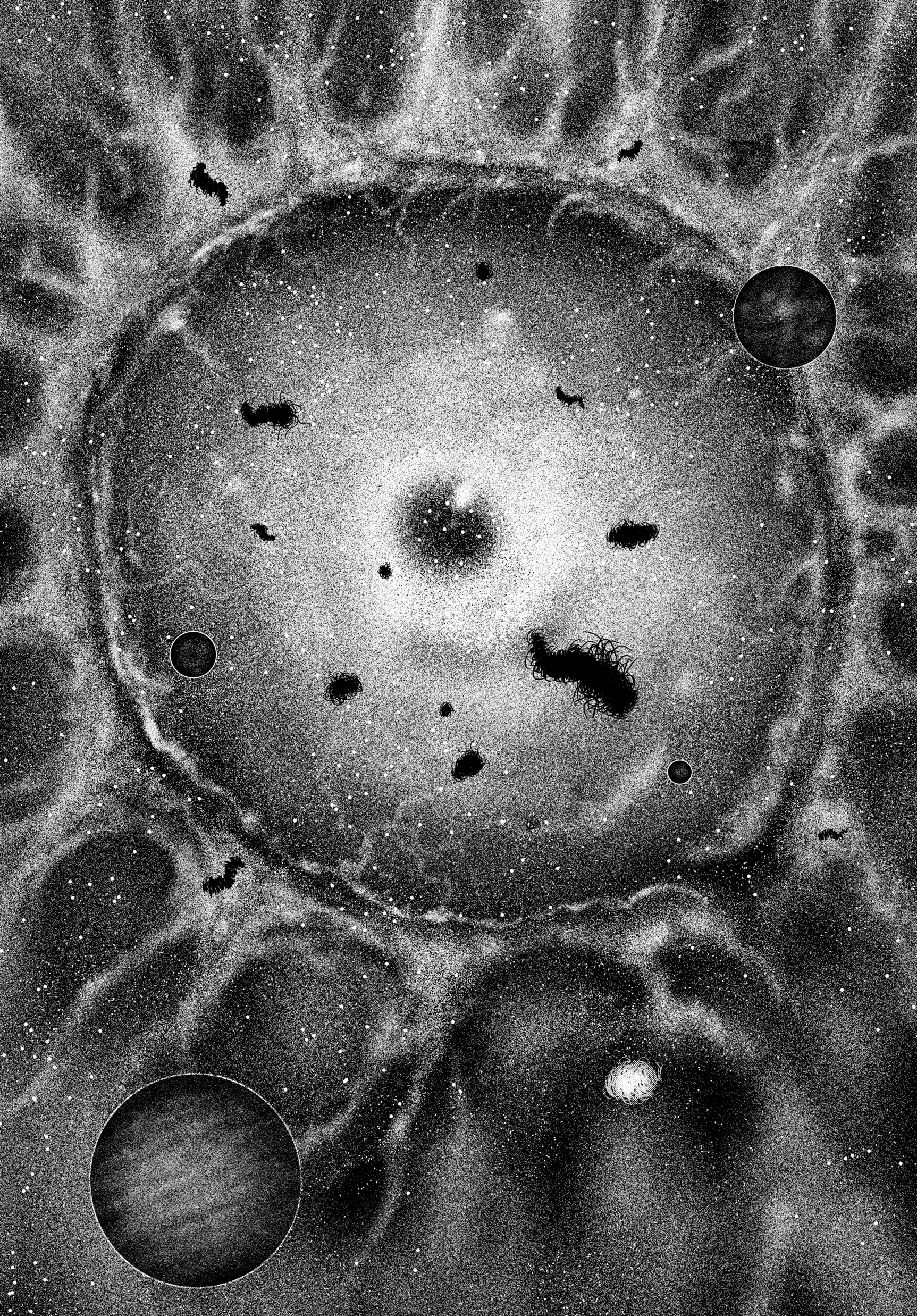 >>283031915Keep in mind that all those little white dots are entire clusters of galaxies based on >>283031868 and >>283031884 (and whatever the fuck those black orbs are). This thing is utterly enormous.