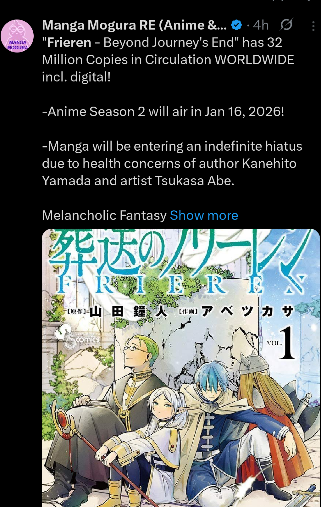 >>283074351The hiatuses will stop when Fern gives up sweets.