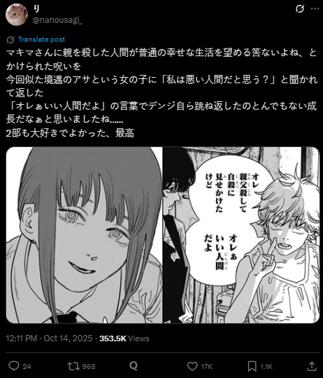 >>283035170>At least Denji made peace with killing his dad.When?