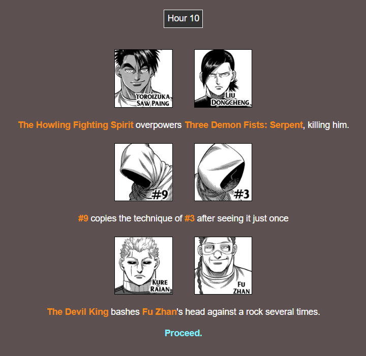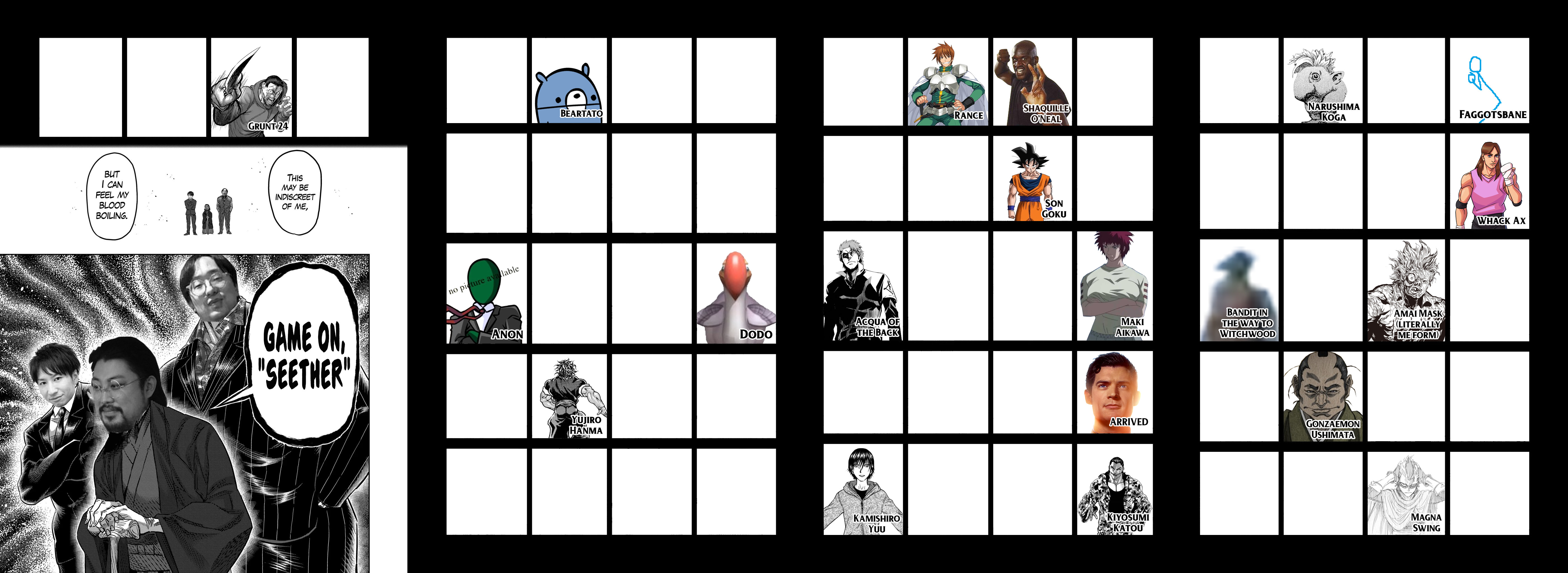 >>283049406>Not a single Arena Event ... not a single Endgame event ...Just like the real Kengan>>283049442Yeah. The original setting were fine and gave the most hilarious results.