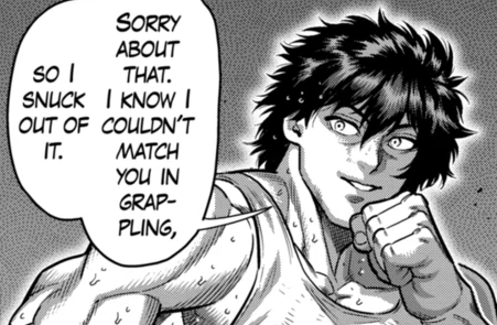 >>283045366>I've literally forgot what Himuro can doJeet Kune Do. But the only extended fight he had was with Kaneda and he just did basic shit, so if he does get another detailed fight Sandro can easily bullshit up some new gimmick for him or just say he developed a new fighting style.