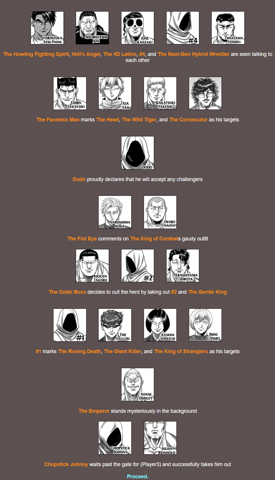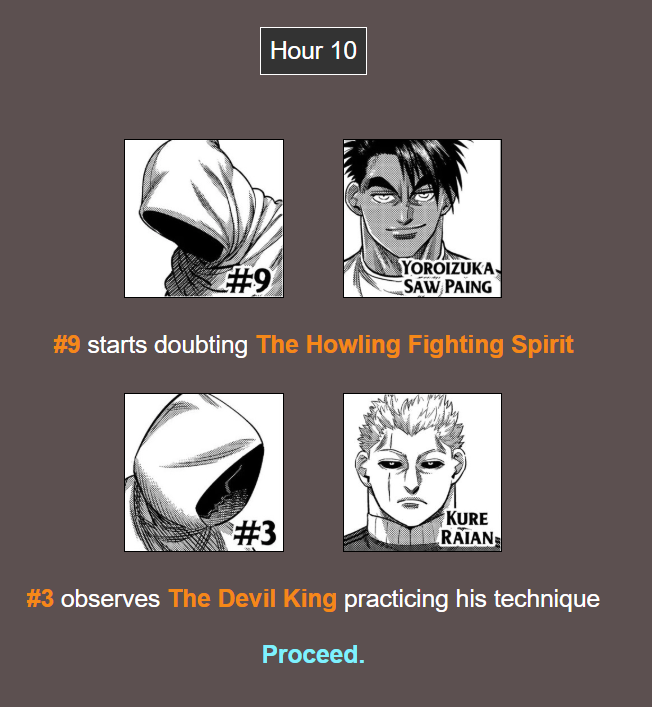 >5th chapter of the tournament "starting">wasting entire fucking pages on single character shots