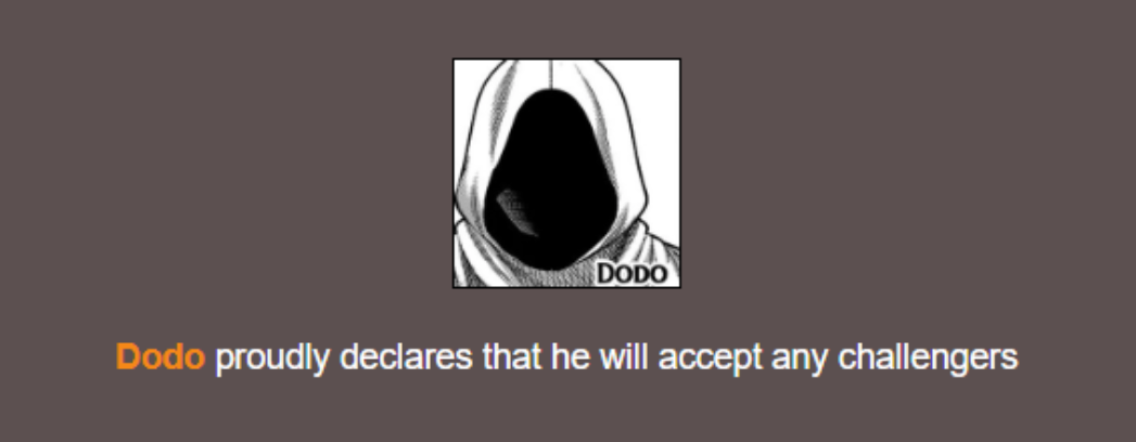 >>283044302The 64th contestant? The last fighter to “arrive” and then we actually begin… next chapter?