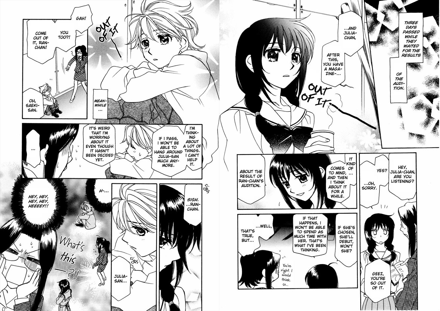 What was your reaction when reading through a manga and suddenly came to an abrupt end? Consumed by rage? Filled with confusion? Drown in disbelief and denial? Perhaps, plagued with uncontrollable laughter at the absurdity. Nevertheless, come. Relive, share with others, or experience for yourself the first time some of these short lived (maybe justifiably so) creations.Make valuable lessons be learnt. And never forget, the true ending was the friends we read questionably sourced Japanese cartoon drawings on a handicraft forum with along the way.The all too simple solution to the idol industry's biggest problem.>Slapstick shoujo-ai romantic comedy made special by Hayashiya Shizuru's unique brand of humour>Julia Tachibana, an experienced idol, is infuriated when her boss saddles her with playing 'senpai' to 15-year-old new recruit Ran Asakawa. But the moment she first lays eyes on the tall, cute blonde who is to be her kouhai, all of that changes...