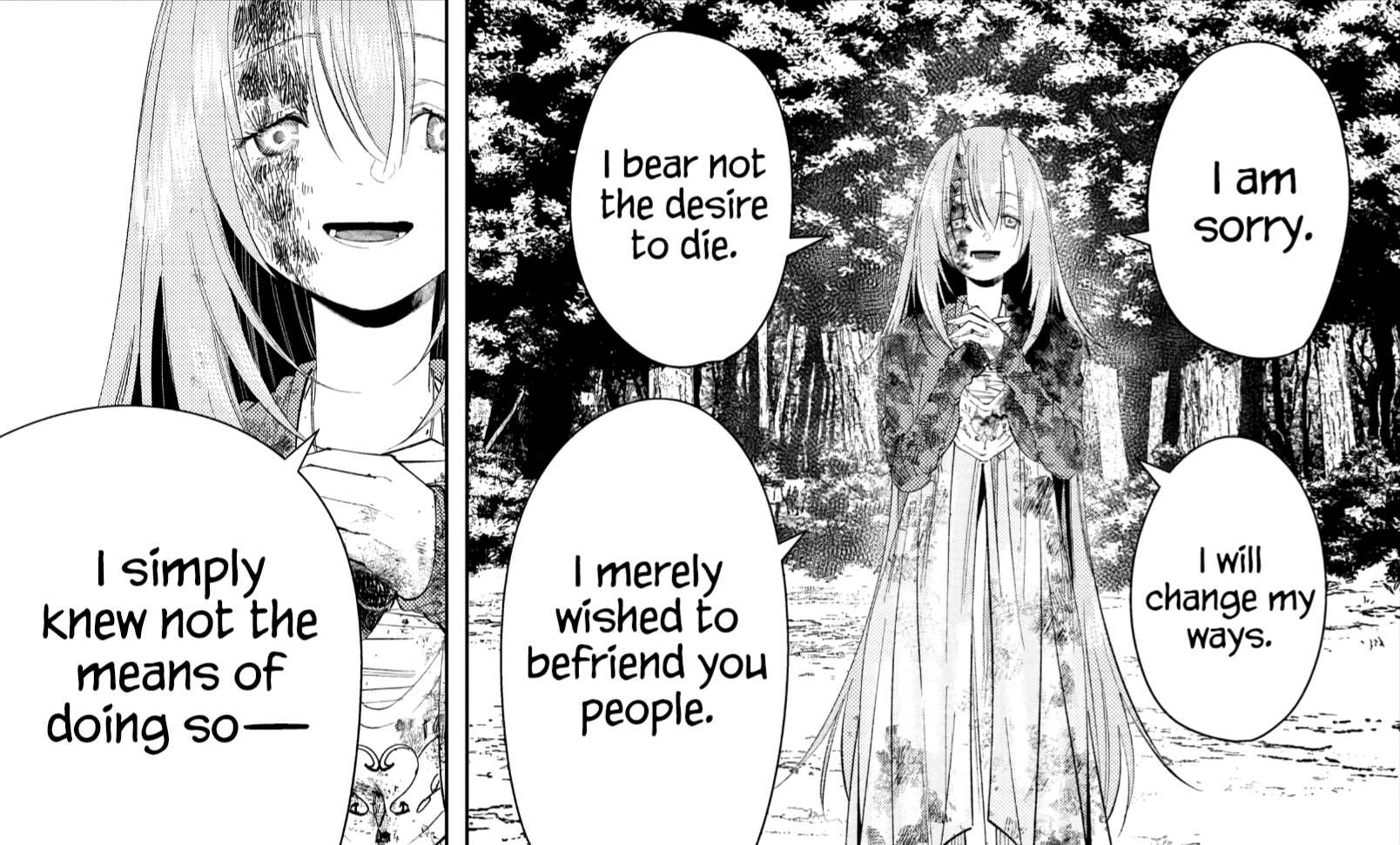 >>283081052>Demons have to be capable of some form of empathy in order to to interact just with one anotherIt's been clearly stated they don't feel any kinship towards each other and don't even have the concept of family. They live alone from the moment they are born and only band together, in small groups, out of convenience and/or because they're forced to by a stronger demon. The only thing they acknowledge is strength in the form of mana and the only thing they, as a whole, (besides preying on humans) give a fuck about is working on the one specific magic they specialize in so they can get stronger. When they speak with humans they are never doing so to come some sort of common understanding to forge some bond with them, only using their words like a tiger would use its fangs. Lügner explicitly mentions how their way of using words to kill the weak is completely fine and that considering them mere beasts that use language to deceive humans is an apt description. What do you need the author to do to make you understand they aren't supposed to be redeemed? At this point there is nothing short of the voice of god telling you all of this is true and can never be overcome for you to accept it and then you'd complain about that being bad-writing, as if every single creature in the world needs to come to some common understand with each other.