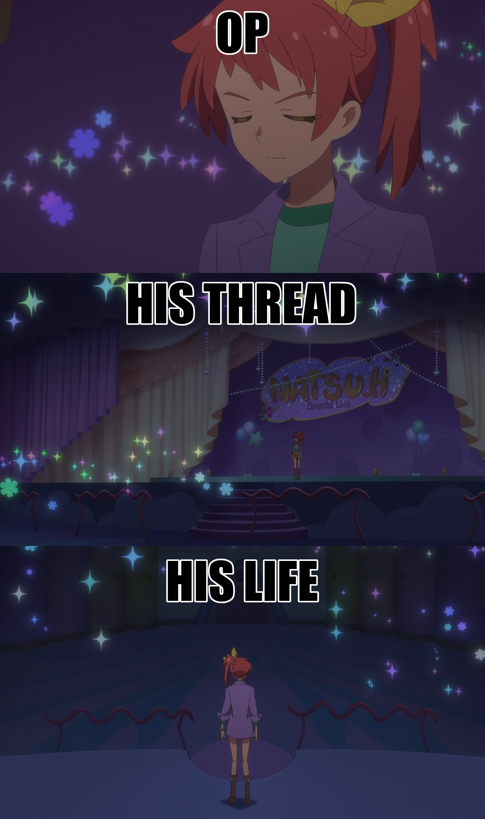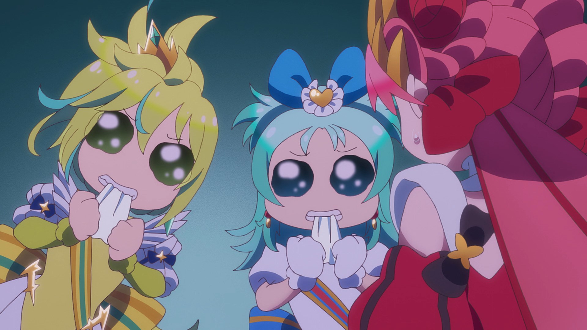 Episode 27Sing Out Loud Having driven away the strange white being known as the Flower Knight Sincere,the Princesses take a brief moment of respite.However, the crisis facing Alicepia has not yet passed,and they can’t help but feel a bit disheartened.Even so, today is Natsu's long-awaited concert!Switching gears, they hurry off to the venue.Yet, the one who reaches out her sinister hand toward that bright stage is once again the Flower Knight Sincere. [\spoiler]Good Morning Princess/a/nons. I'm not the anon that normally does the previews but I was up and they were out.