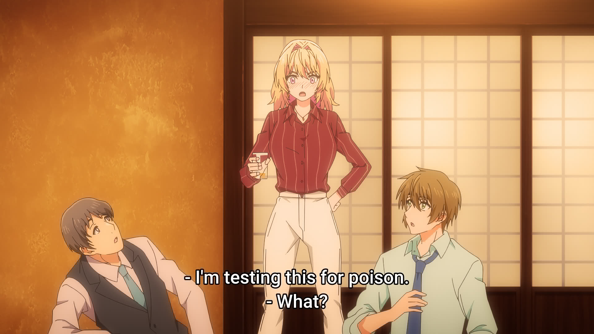 >>283077508>interrupts you and your boss>says she's checking your drink your poisonLegitimately, how do you react to this situation?She is quite clearly drunk out of her mind to even consider the idea that someone's drink would contain poison.