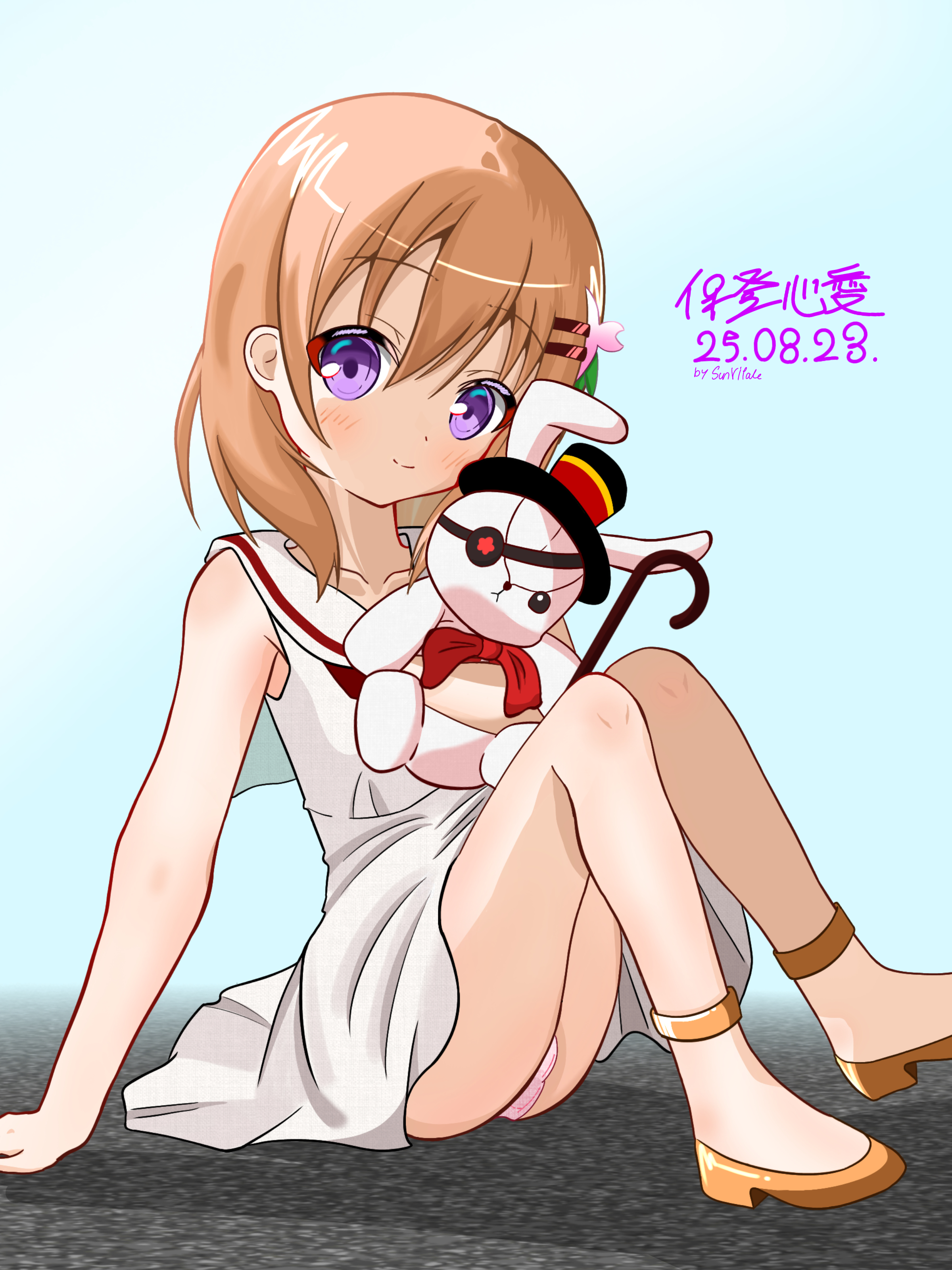 >>283113908Under her shirt. But also I just noticed this little bit of white pantsu poking out. Isn't this from an official image?
