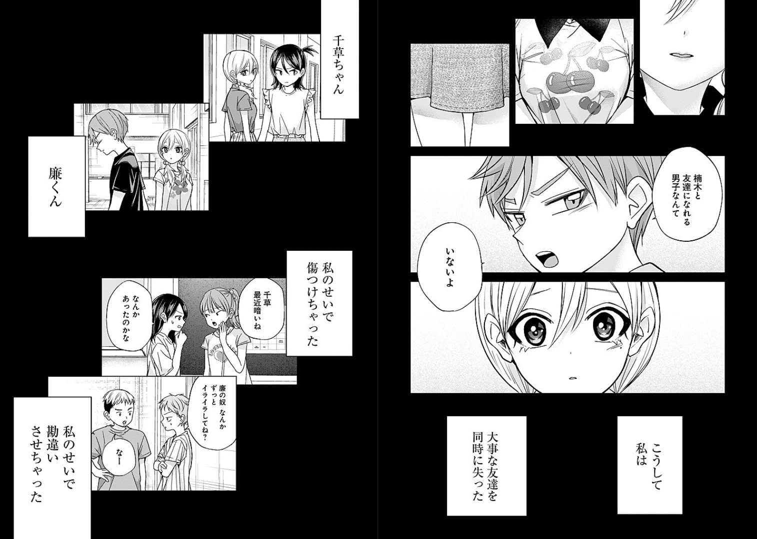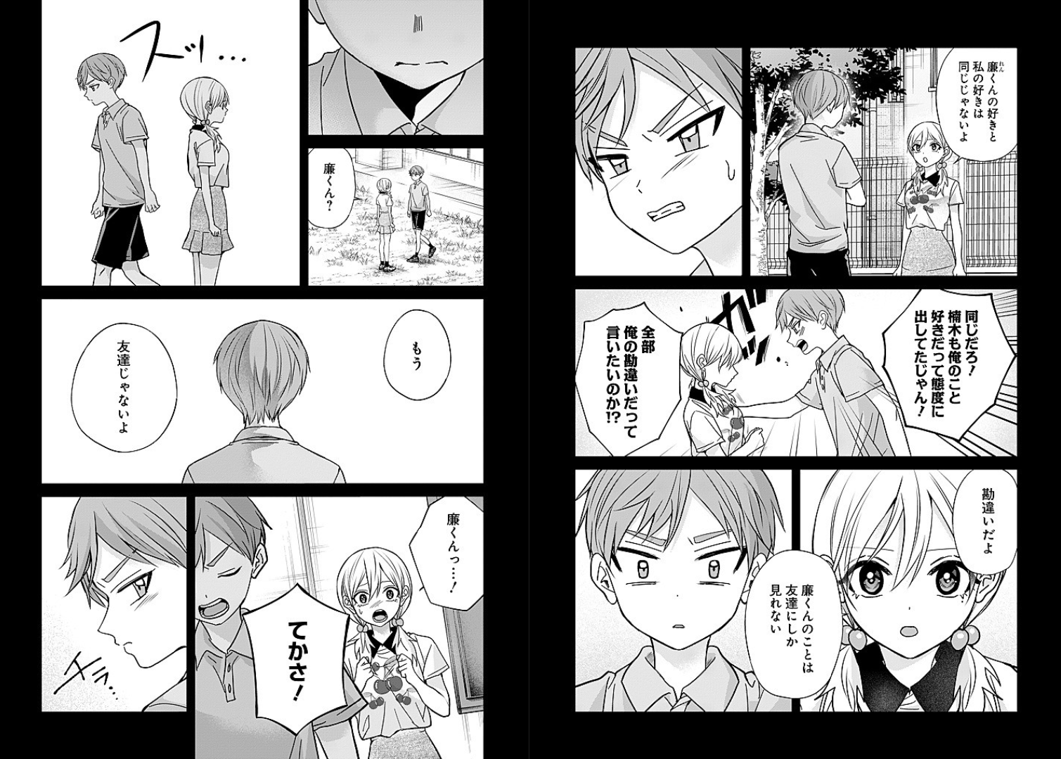 >Ren-kun, your “like” and my “like” aren’t the same thing.>Of course they are!>You like me too—you were showing it all the time!>Are you saying I got it all wrong!?>You did. You misunderstood me.>Ren-kun… I can only see you as a friend.>Ren-kun…?>I don’t want to misunderstand anymore. We’re not friends.>Ren-kun…!>Shut up!