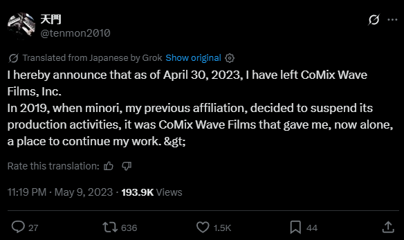 >>283095933Kimi no na wa is one of the best anime films ever made and Shinkai's magnum opus (right up there with Princess Mononoke), but ever since then he keeps trying to milk the same "girl meets boy" generic formula and its getting stale.