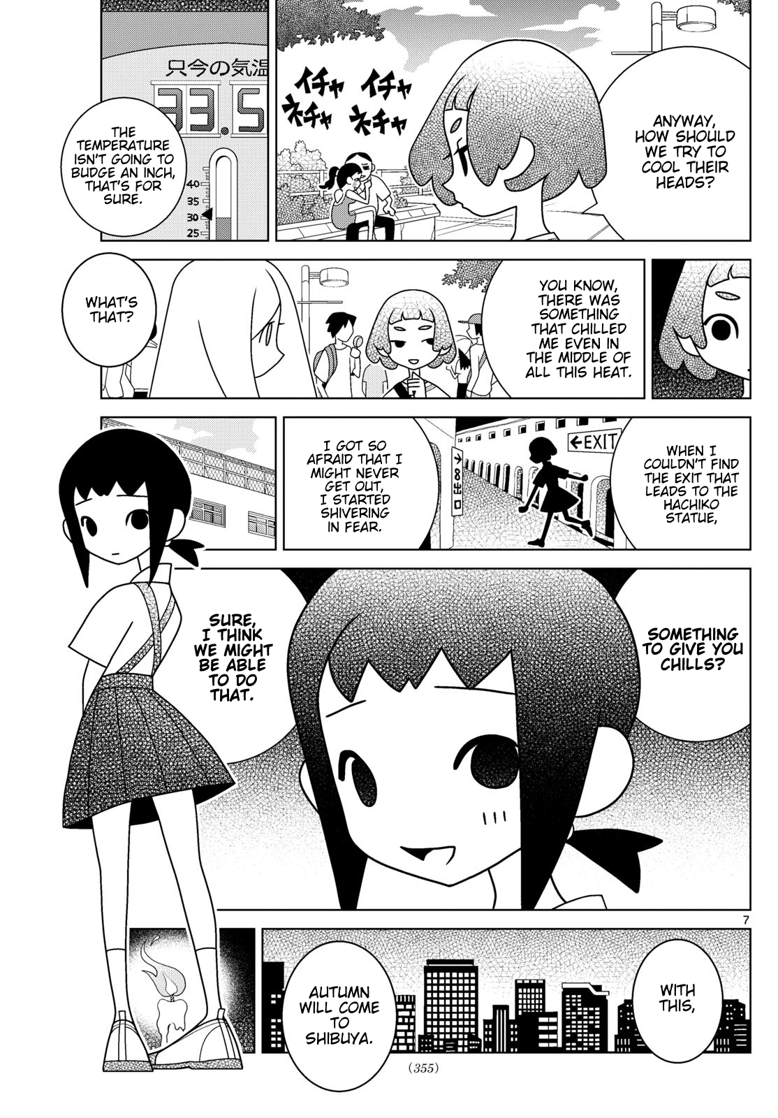 >We'll leave the *ketsu* to you, Ikko-san.>What's the *ketsu*?>The punchline, right?>I can't...>Do something like that.>(*Depressed...*)>(*Setback*)>Punchline..>You're still doing panel three.>This is bad... I can't let myself lose to those Mizkan-like eyes...Mizkan is a vinegar brand with a distinctive logo consisting of three lines on top of a circle.>Shibuya Duty Diary - I wouldn't mind losing the third period at school.>Sidebar: It seems that the Moyai has been moved to the plaza on the western side of Shibuya Fukuras for the duration of the redevelopment.Thanks for reading. I'm sick, so come up with a funny conclusion yourselves, please.